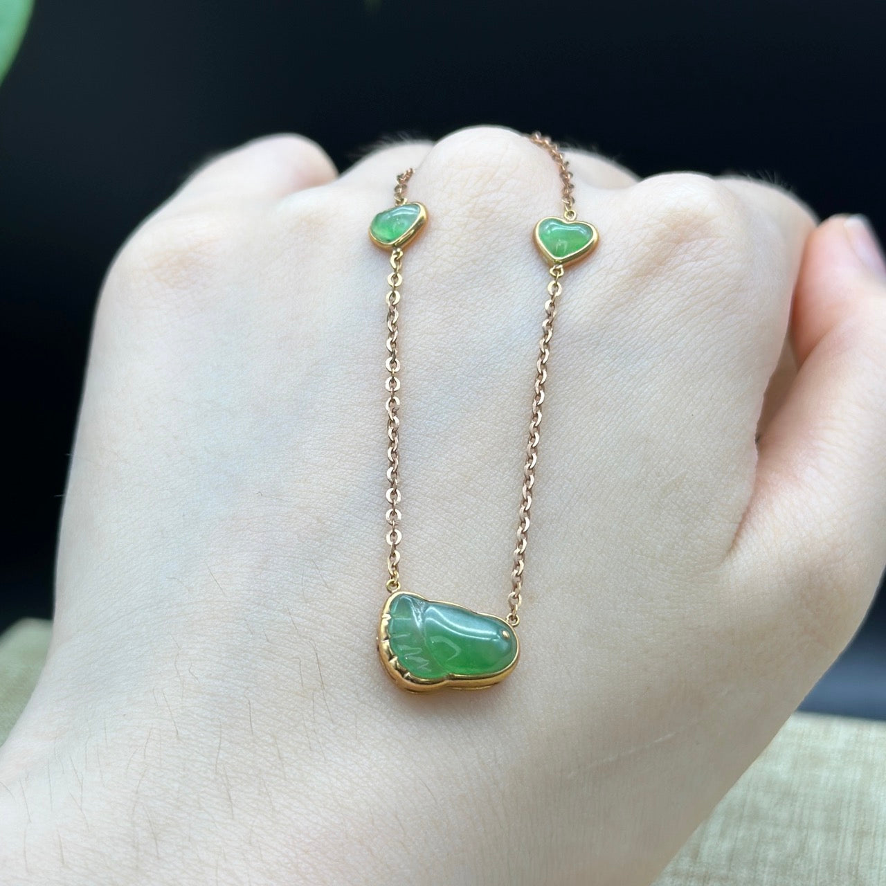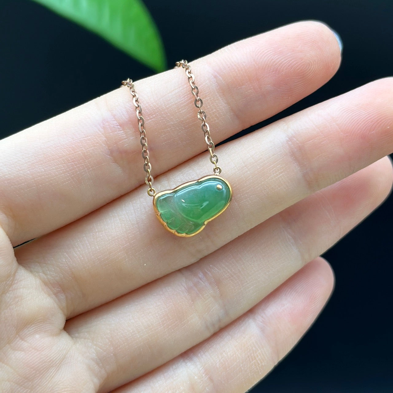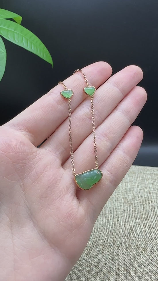 *Design concept---Design inspired by the shape of feet, the necklace is topped by a beautifully detailed heart pattern. Dangling down below is a rare, high-quality imperial green jade. Free of cracks and inclusions. "I Love You Forever", sense the love. It looks so lovely and exquisite. It's the very perfect gift for yourself and your love.