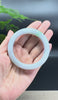 * DETAILS--- Genuine Burmese Jadeite Jade Bangle Bracelet. This exquisite Burmese jadeite bangle mesmerizes with its soft lavender blending green with smooth texture. The half round shape offers both comfort and a perfect display of the jade’s natural beauty—a wearable treasure radiating elegance and cultural significance for the discerning collector.