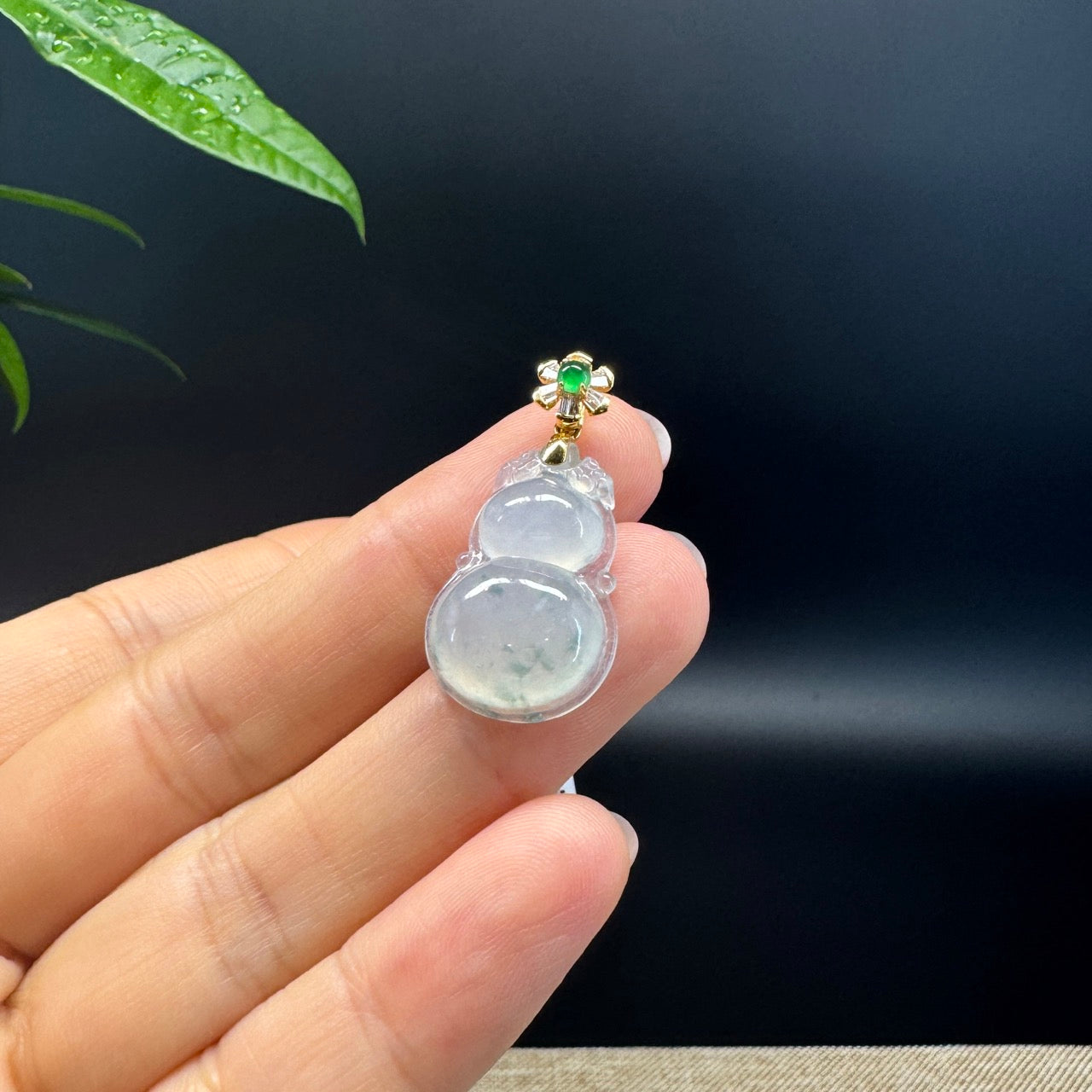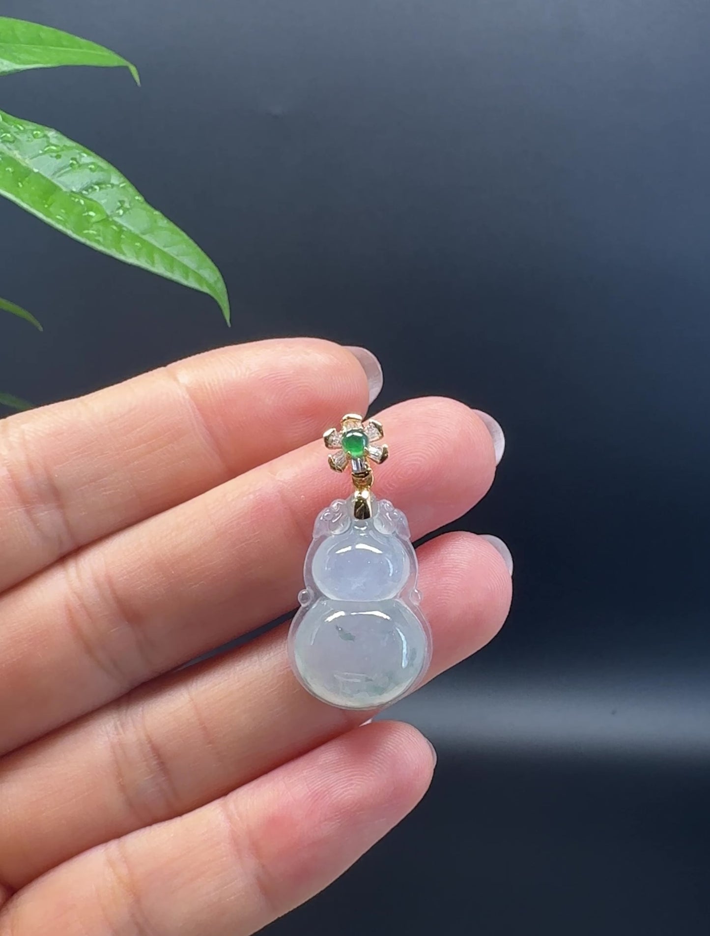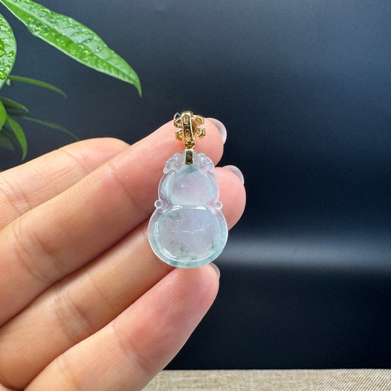 *Design concept-- Genuine Icy Jade fashioned into a section of Lucky HuLu as accent. This pendant is made with high-quality Burmese ice jadeite jade. The jade texture is smooth with 18k yellow gold imperial jade bail. Looks so simple and nice! The pendant depicts a Magic HuLu to complete the picture. To represent wealth, health and good fortune. It's a special gift for yourself or your love.