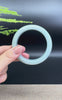 * DETAILS---Genuine Burmese Jadeite Jade Bangle Bracelet. This exquisite Burmese jadeite bangle mesmerizes with its grey green with smooth texture. The half round shape offers both comfort and a perfect display of the jade’s natural beauty—a wearable treasure radiating elegance and cultural significance for the discerning collector.