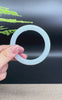 * DETAILS--- Genuine Burmese Jadeite Jade Bangle Bracelet. This exquisite Burmese jadeite bangle mesmerizes with its milky white blending a touch of light green with smooth texture. The traditional round silhouette showcases nature's artistry in smooth, luxurious curves—a wearable treasure radiating elegance and cultural significance for the discerning collector.