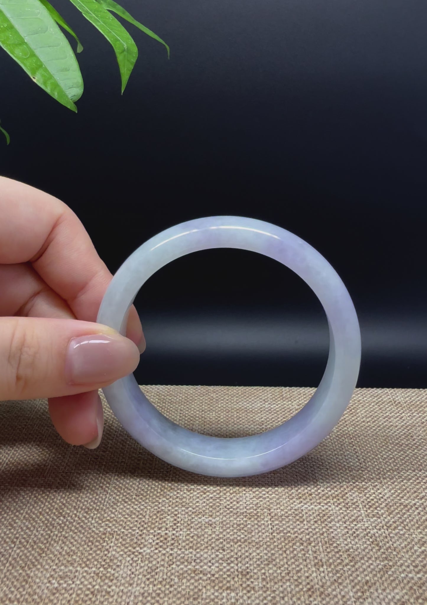 * DETAILS--- Genuine Burmese Jadeite Jade Bangle Bracelet. This bangle is made with very high-quality genuine Burmese Jadeite jade. The jade texture is fine and smooth with half lavender half gray color. The half round shape offers both comfort and a perfect display of the jade’s natural beauty. Known to symbolize protection and strength, jade bangles hold deep meaning, making this piece a collectible, one-of-a-kind gift for yourself or someone truly special.