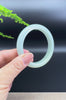 * DETAILS--- Genuine Burmese Jadeite Jade Bangle Bracelet. This exquisite Burmese jadeite bangle mesmerizes with its soft white blending light green and some sajin(red flecks) with smooth texture. The half round shape offers both comfort and a perfect display of the jade’s natural beauty—a wearable treasure radiating elegance and cultural significance for the discerning collector.
