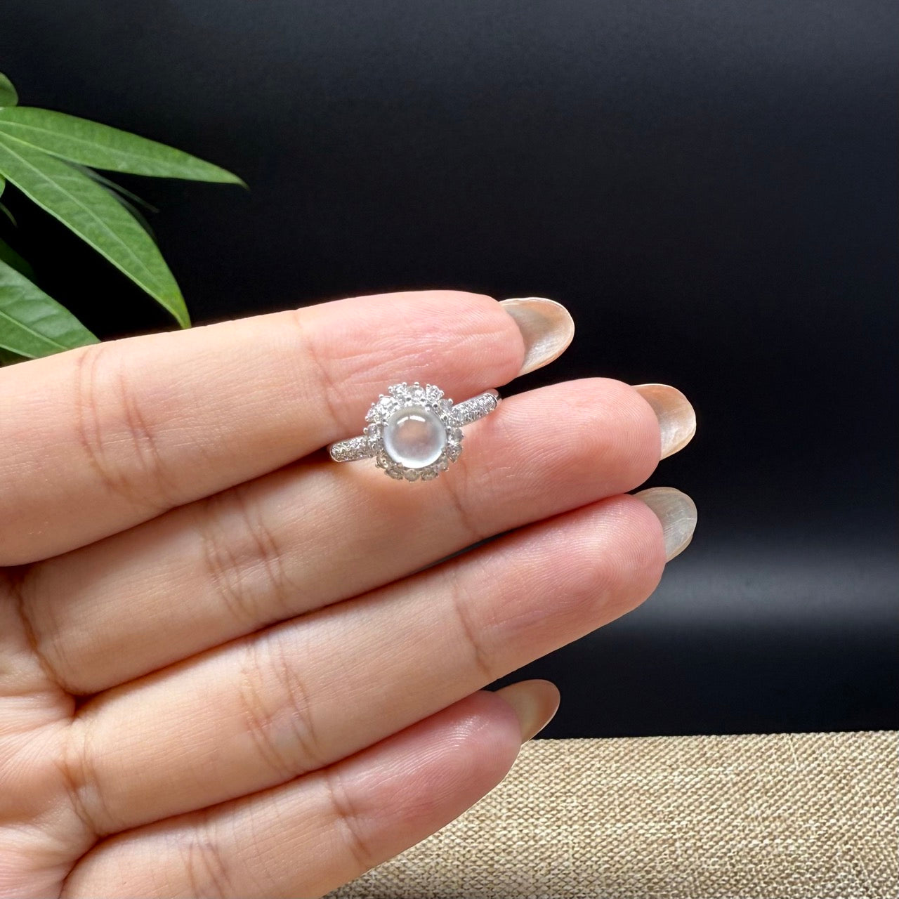 Design concept --- Inspired by the natural beauty of genuine Burmese icy Jadeite jade. The rich, beautiful translucent icy color is found on no other stone. This one-of-a-kind ring combines the natural beauty of the extremely rare gem with everyday luxury. Exquisite designs add details to admire and uniqueness to your everyday memento. It's a luxury ring for yourself and your love.