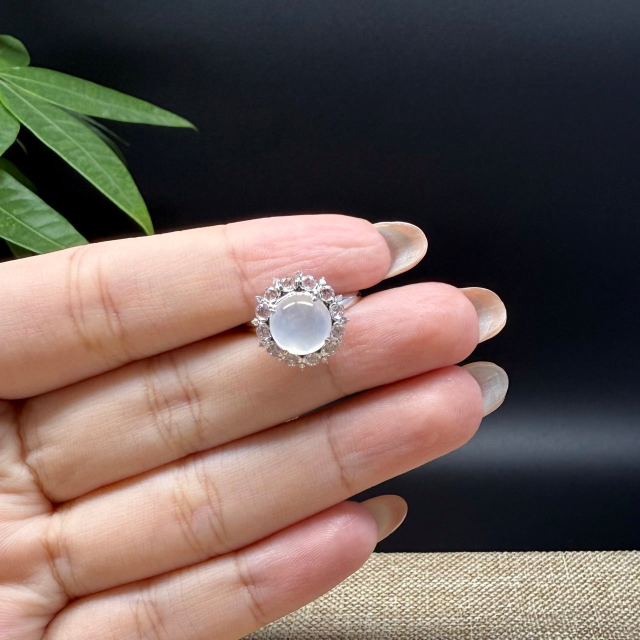Design concept --- Inspired by the natural beauty of genuine Burmese icy Jadeite jade. The rich, beautiful translucent icy color is found on no other stone. This one-of-a-kind ring combines the natural beauty of the extremely rare gem with everyday luxury. Exquisite designs add details to admire and uniqueness to your everyday memento. It's a luxury ring for yourself and your love.