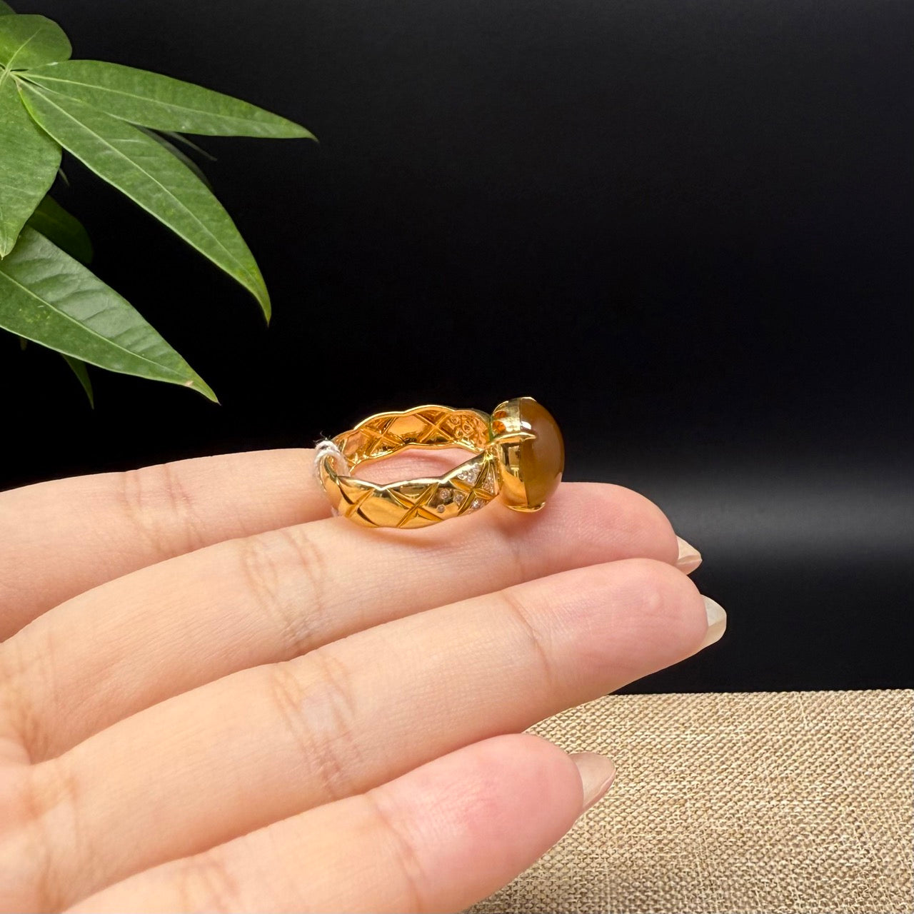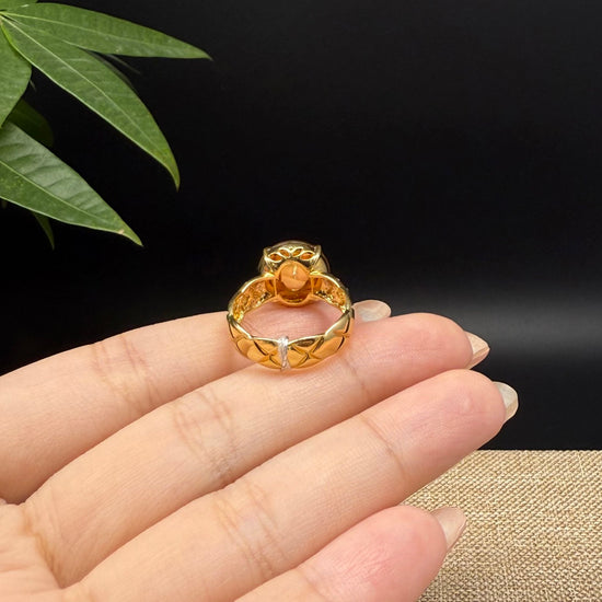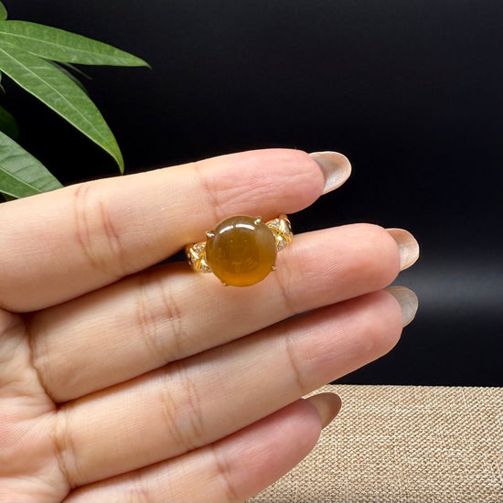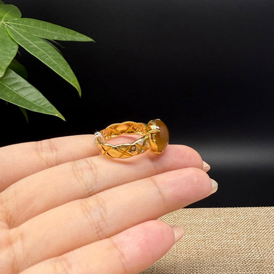 Design concept ---Inspired by the natural beauty of genuine Burmese Honey yellow Jadeite jade. The rich, beautiful translucent yellow color is found on no other stone. This one-of-a-kind engagement ring combines the natural beauty of the extremely rare gem with everyday luxury. Exquisite designs add details to admire and uniqueness to your everyday memento. It's a luxury ring for yourself and your love.