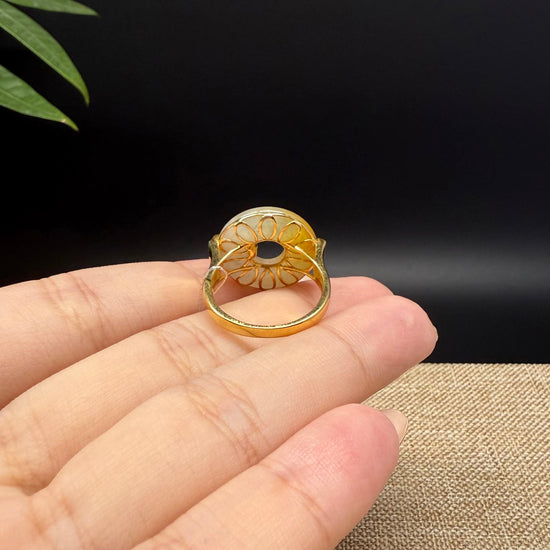 Design concept ---Inspired by the natural beauty of genuine Burmese honey yellow Jadeite jade. The rich, beautiful translucent yellow color is found on no other stone. This one-of-a-kind engagement ring combines the natural beauty of the extremely rare gem with everyday luxury. Exquisite designs add details to admire and uniqueness to your everyday memento. It's a luxury ring for yourself and your love.