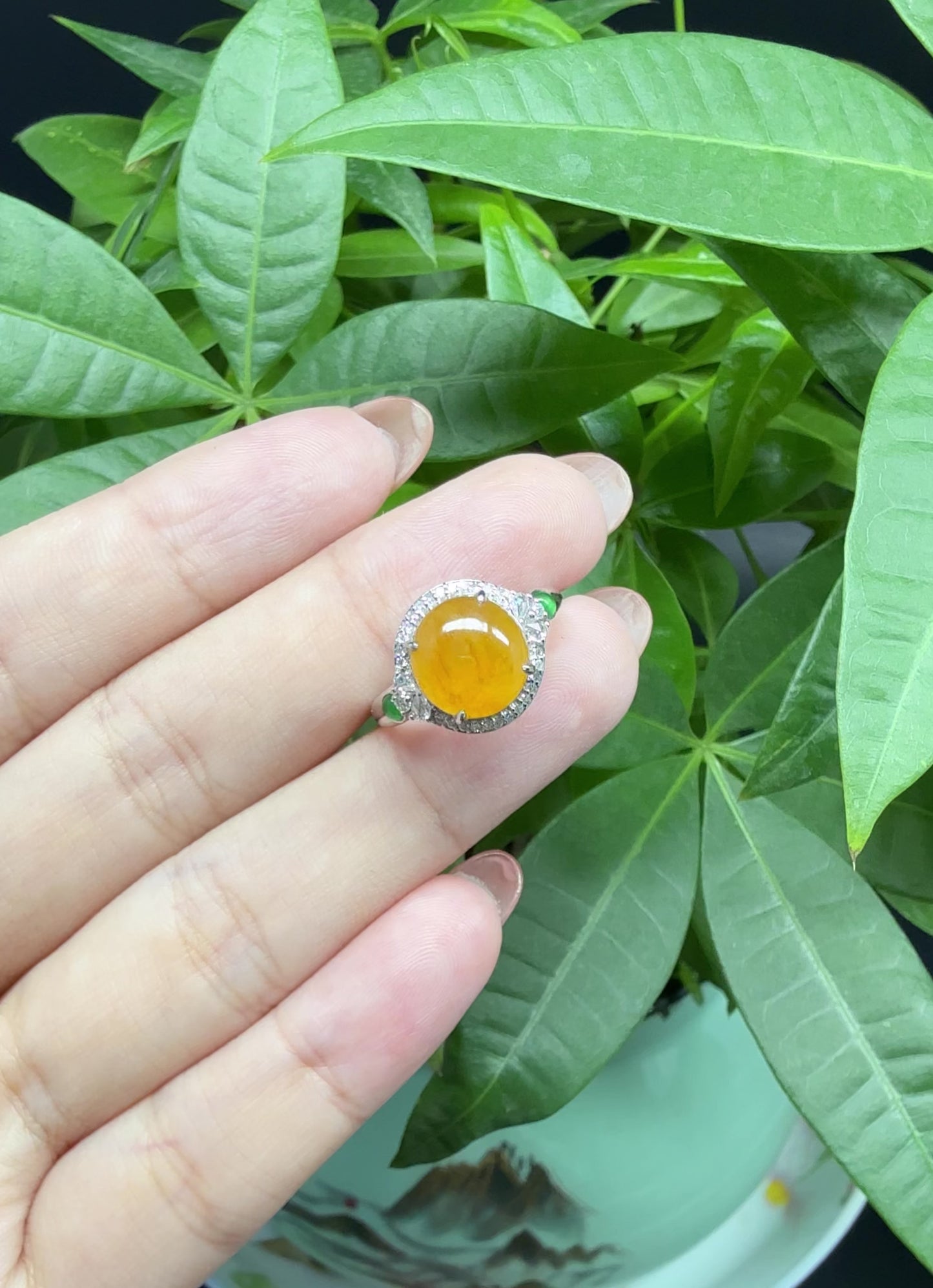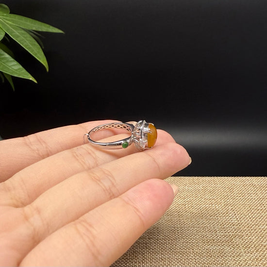 Design concept ---Inspired by the natural beauty of genuine Burmese honey yellow Jadeite jade. The rich, beautiful translucent yellow color is found on no other stone. This one-of-a-kind engagement ring combines the natural beauty of the extremely rare gem with everyday luxury. Exquisite designs add details to admire and uniqueness to your everyday memento. It's a luxury ring for yourself and your love.