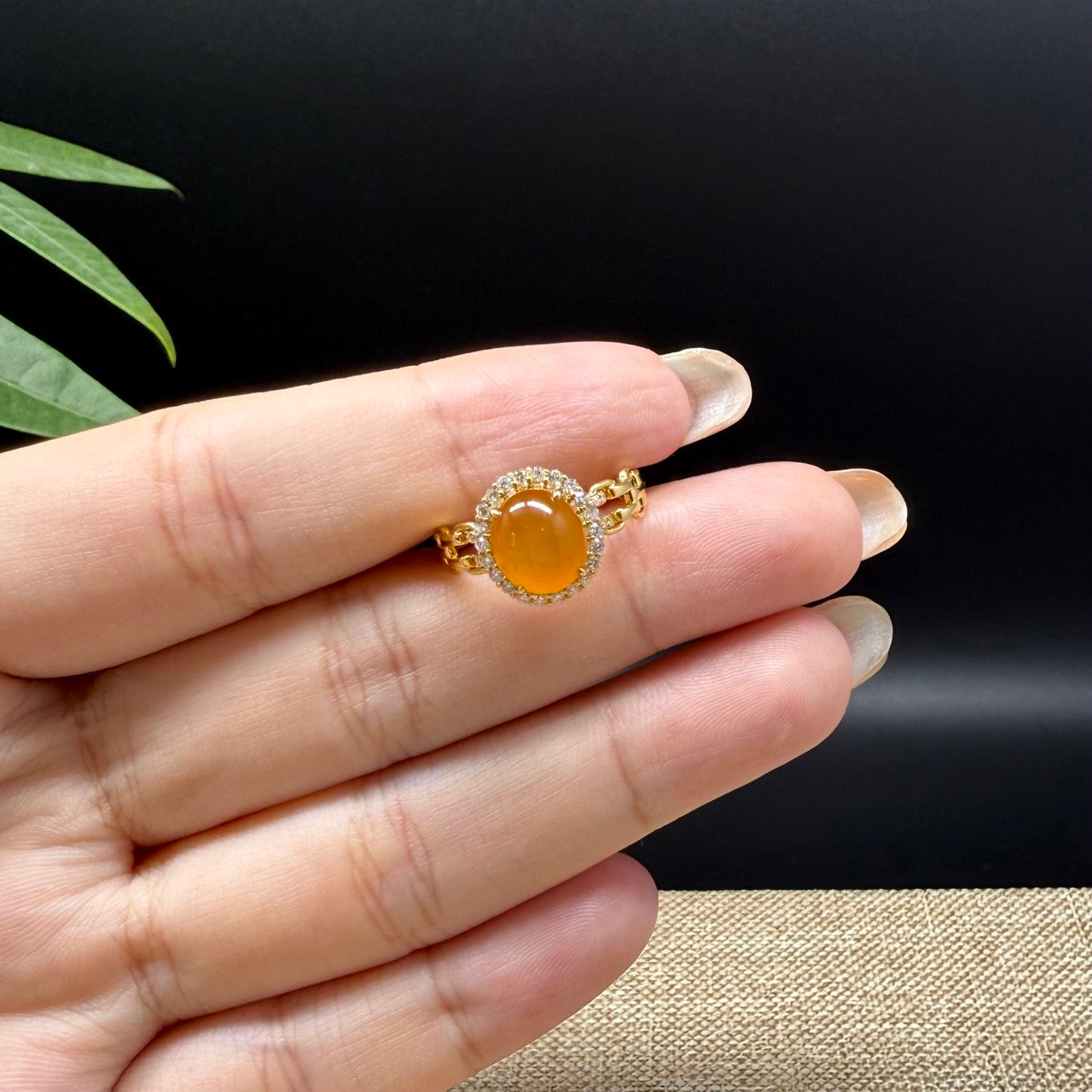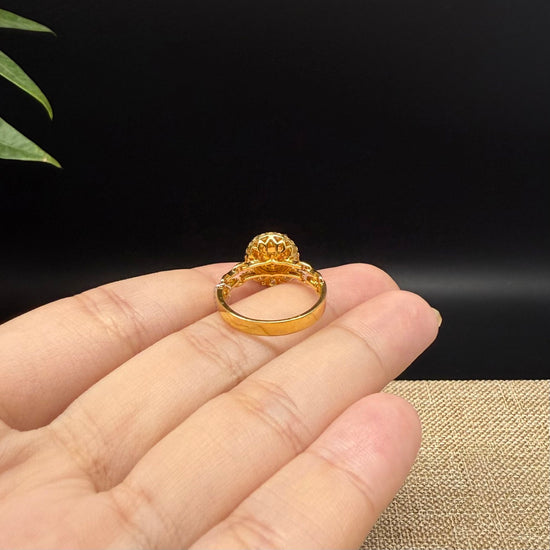 Design concept ---Inspired by the natural beauty of genuine Burmese Honey yellow Jadeite jade. The rich, beautiful translucent yellow color is found on no other stone. This one-of-a-kind engagement ring combines the natural beauty of the extremely rare gem with everyday luxury. Exquisite designs add details to admire and uniqueness to your everyday memento. It's a luxury ring for yourself and your love.