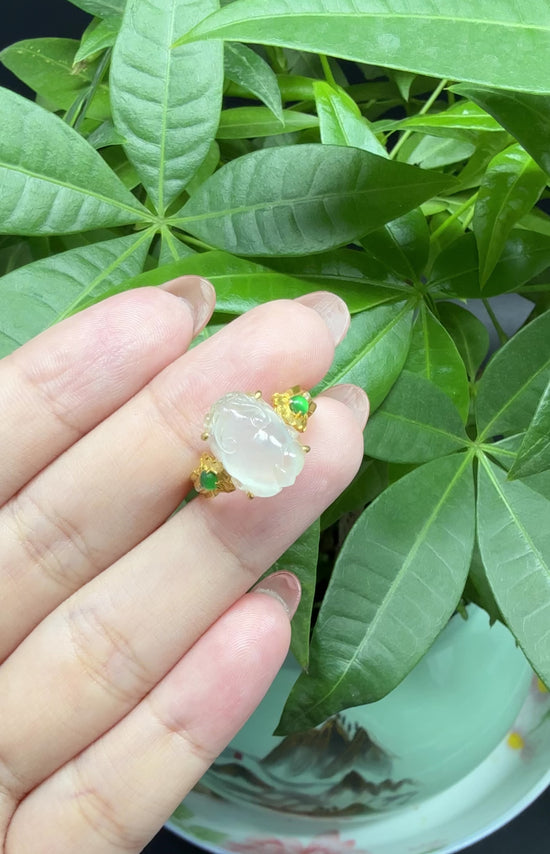 Design concept --- Inspired by the natural beauty of genuine Burmese icy Jadeite jade. The rich, beautiful translucent yellow color is found on no other stone. This one-of-a-kind ring combines the natural beauty of the extremely rare gem with everyday luxury. Exquisite designs add details to admire and uniqueness to your everyday memento. It's a luxury ring for yourself and your love.