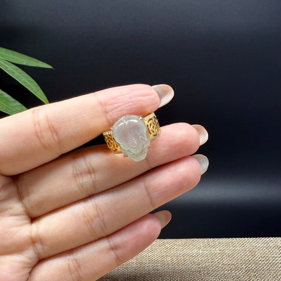 RealJade® "Signature Signet" 18K Yellow Gold Icy Jadeite Jade PiXiu Ring