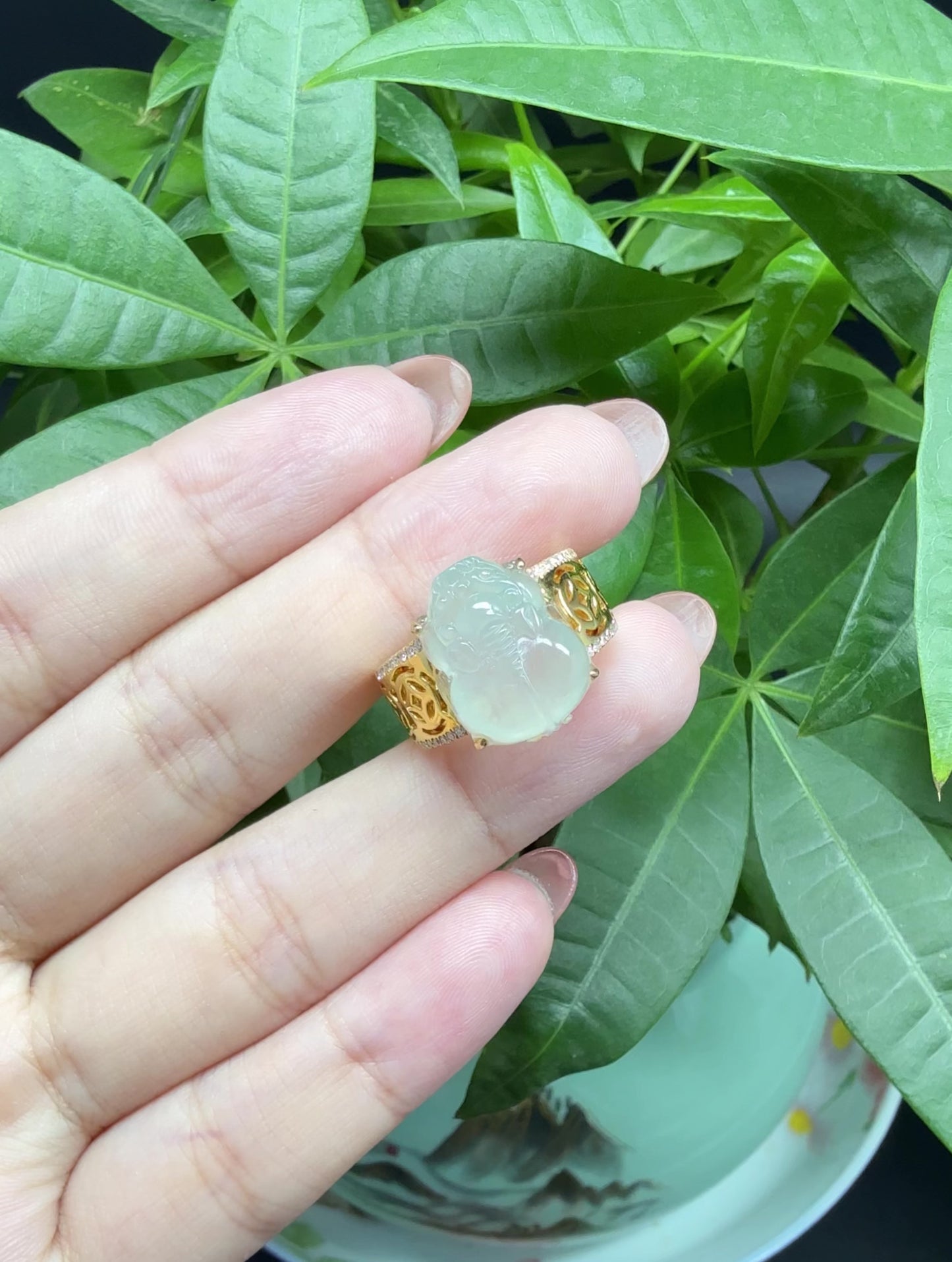 Design concept --- Inspired by the natural beauty of genuine Burmese icy Jadeite jade. The rich, beautiful translucent yellow color is found on no other stone. This one-of-a-kind ring combines the natural beauty of the extremely rare gem with everyday luxury. Exquisite designs add details to admire and uniqueness to your everyday memento. It's a luxury ring for yourself and your love.