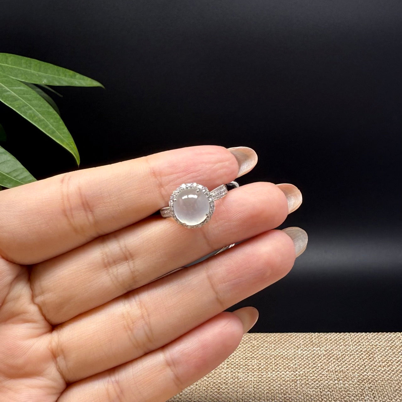 Design concept --- Inspired by the natural beauty of genuine Burmese icy Jadeite jade. The rich, beautiful translucent icy color is found on no other stone. This one-of-a-kind ring combines the natural beauty of the extremely rare gem with everyday luxury. Exquisite designs add details to admire and uniqueness to your everyday memento. It's a luxury ring for yourself and your love.