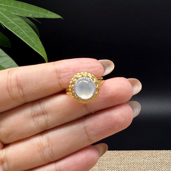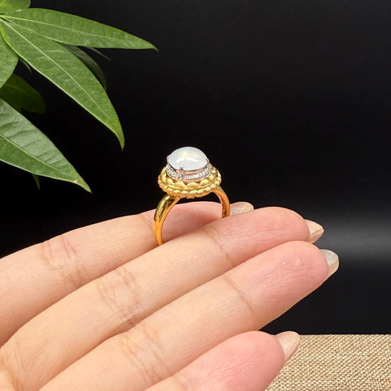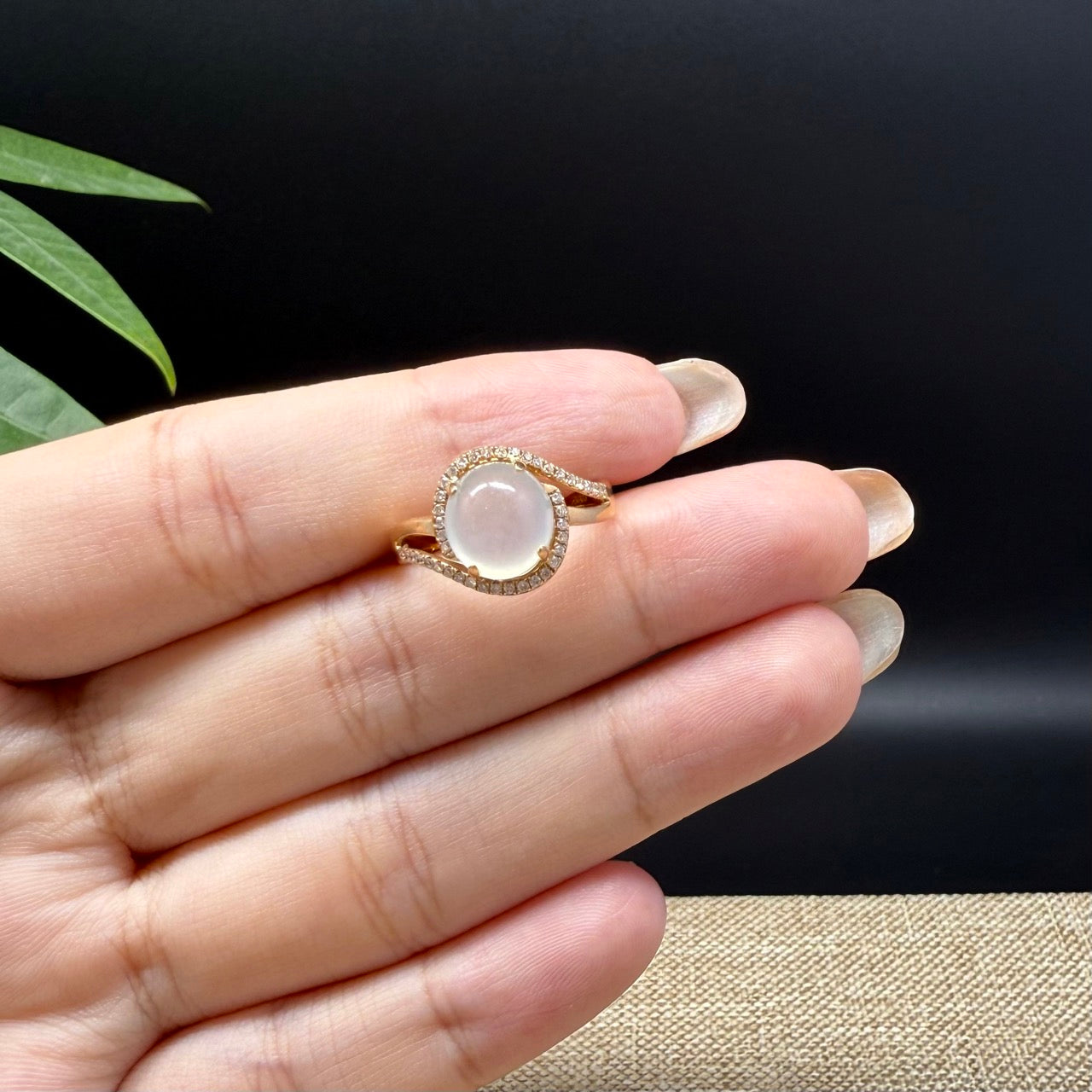Design concept --- Inspired by the natural beauty of genuine Burmese icy Jadeite jade. The rich, beautiful translucent icy color is found on no other stone. This one-of-a-kind ring combines the natural beauty of the extremely rare gem with everyday luxury. Exquisite designs add details to admire and uniqueness to your everyday memento. It's a luxury ring for yourself and your love.