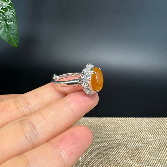 Design concept --- Inspired by the natural beauty of genuine Burmese honey yellow Jadeite jade. The rich, beautiful translucent yellow color is found on no other stone. This one-of-a-kind engagement ring combines the natural beauty of the extremely rare gem with everyday luxury. Exquisite designs add details to admire and uniqueness to your everyday memento.