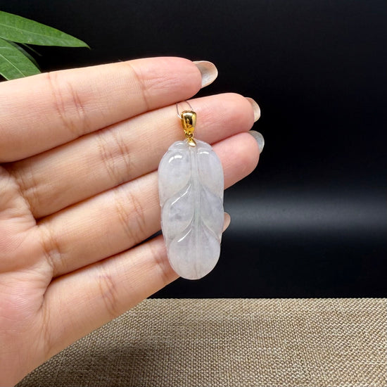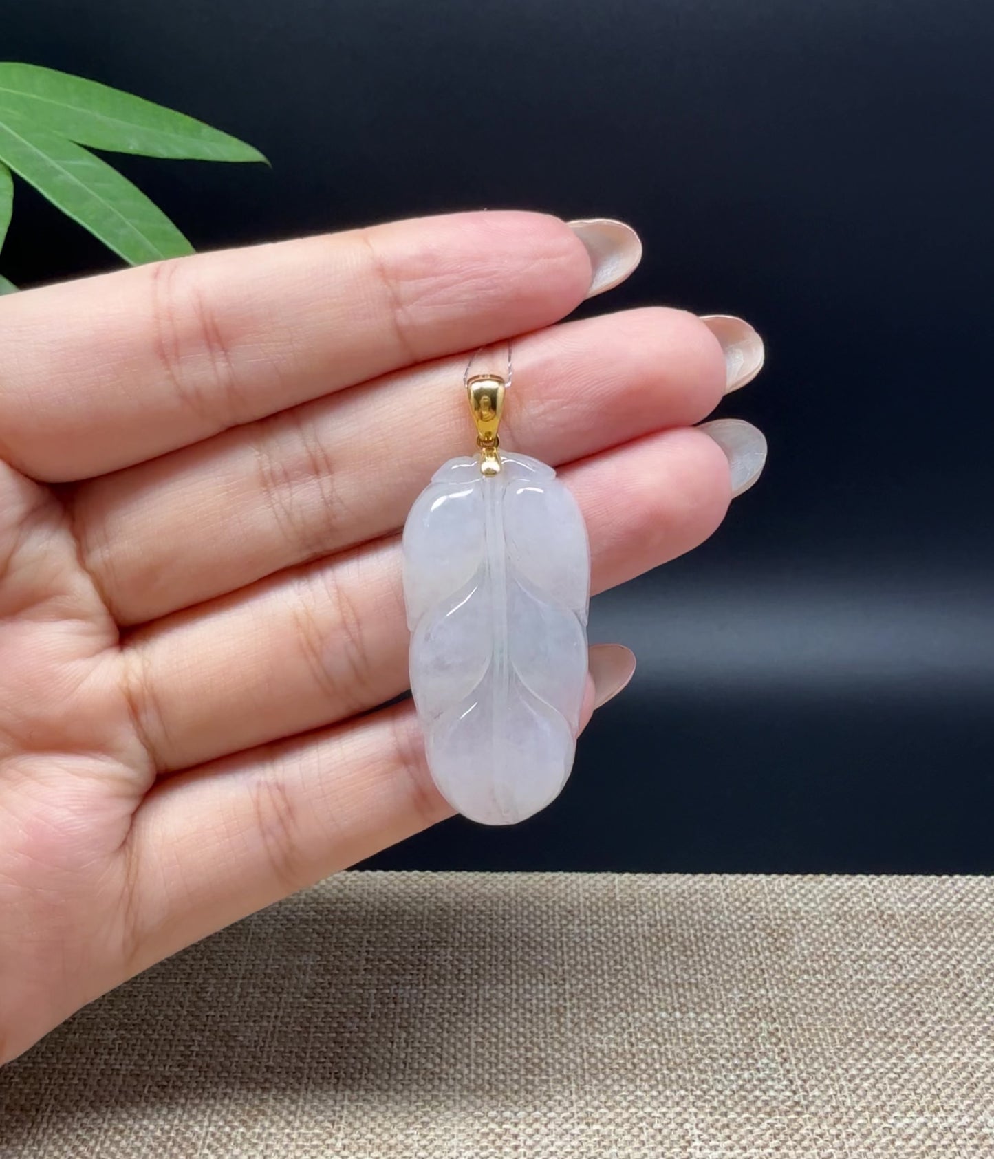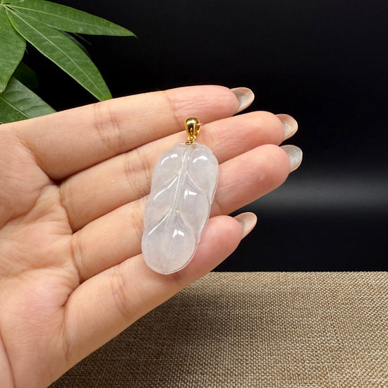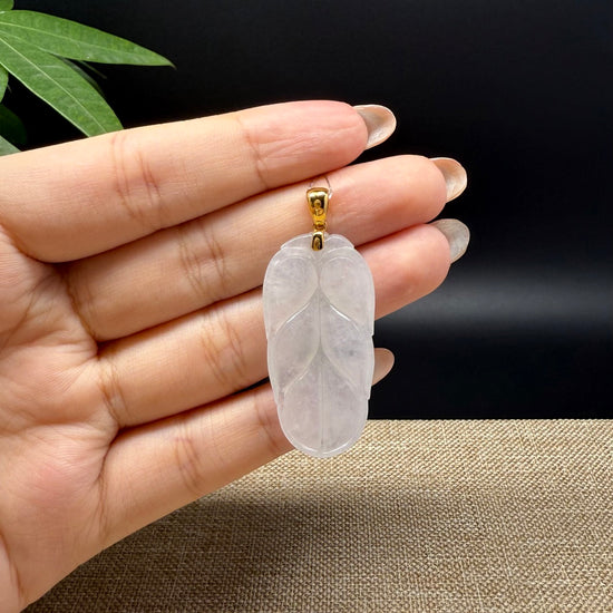 *Design concept--- This pendant is Made with genuine Burmese ice jadeite jade. Jin Zhi Yu Ye "Golden Branches & Jade Leaves" It's meaning someone is very precious as princess. This pendant looks very nice with ice jade. and add 18k yellow gold bail. It's a very special gift for you and your loved ones.