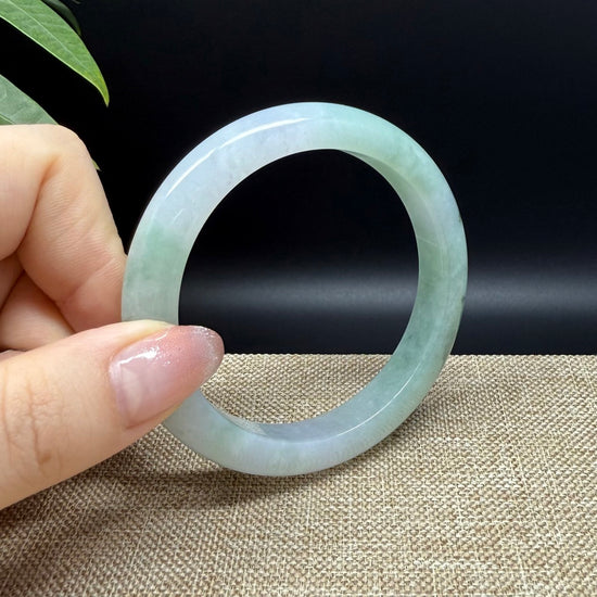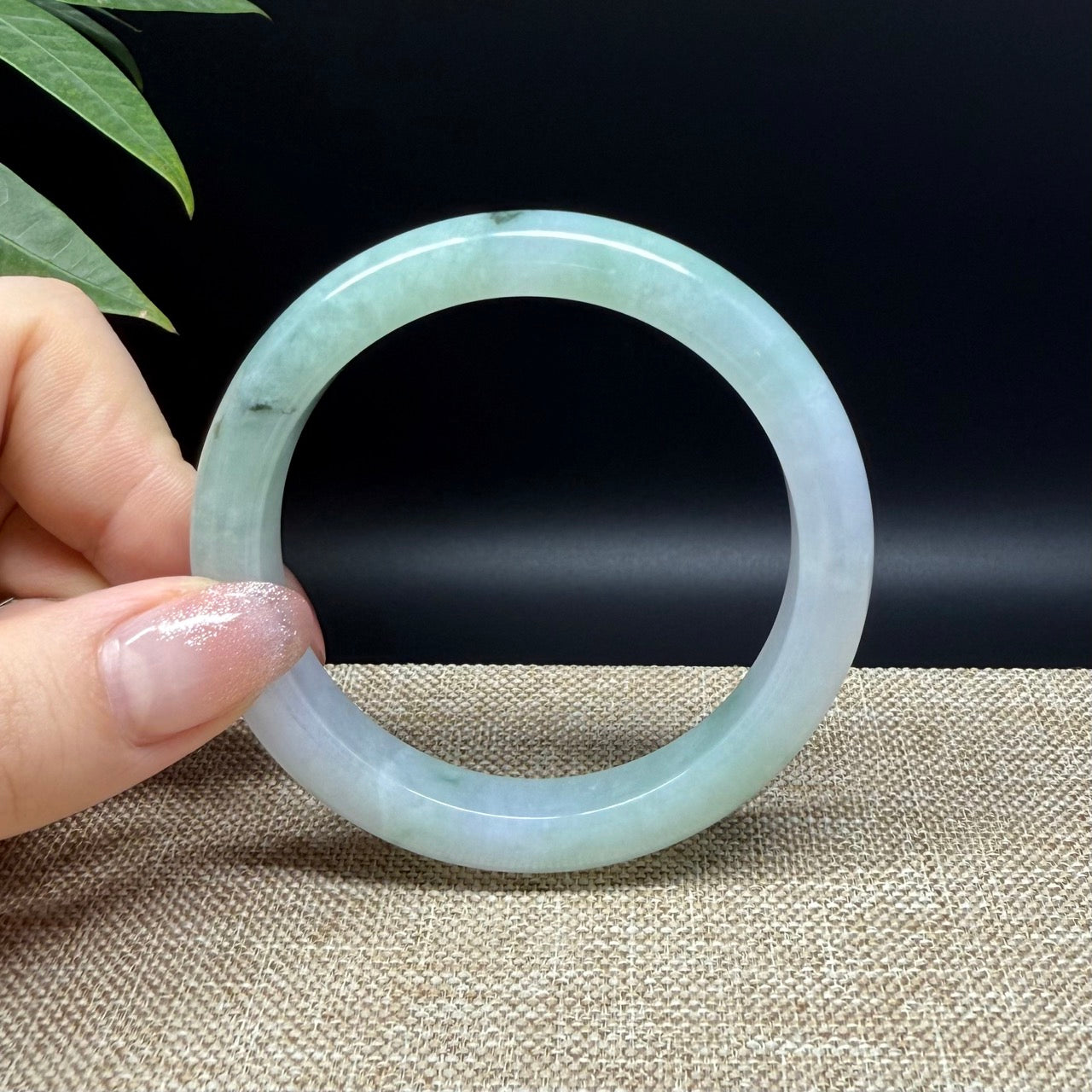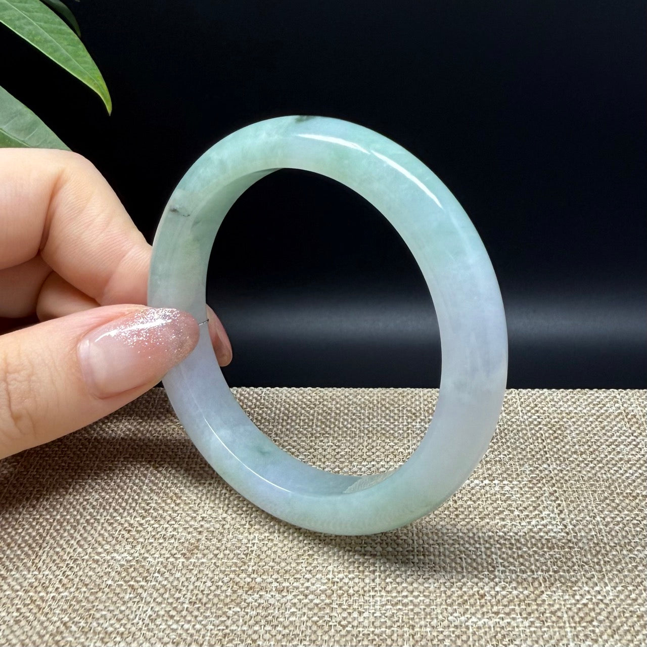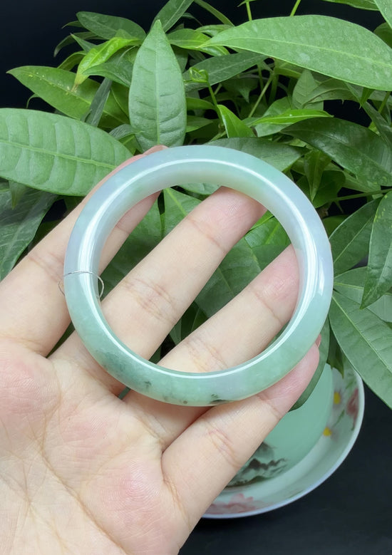 * DETAILS--- Genuine Burmese Jadeite Jade Bangle Bracelet. This bangle is made with very high quality genuine Burmese Green Jadeite jade, The jade texture is so icy with moss green blending blue white which is truly a mesmerizing combination. The classic half round style bangle looks completely luxurious and unique. It's a high-end gift for yourself or your love.