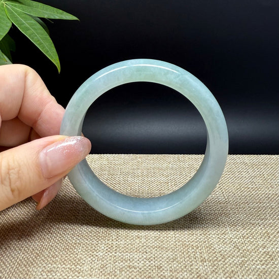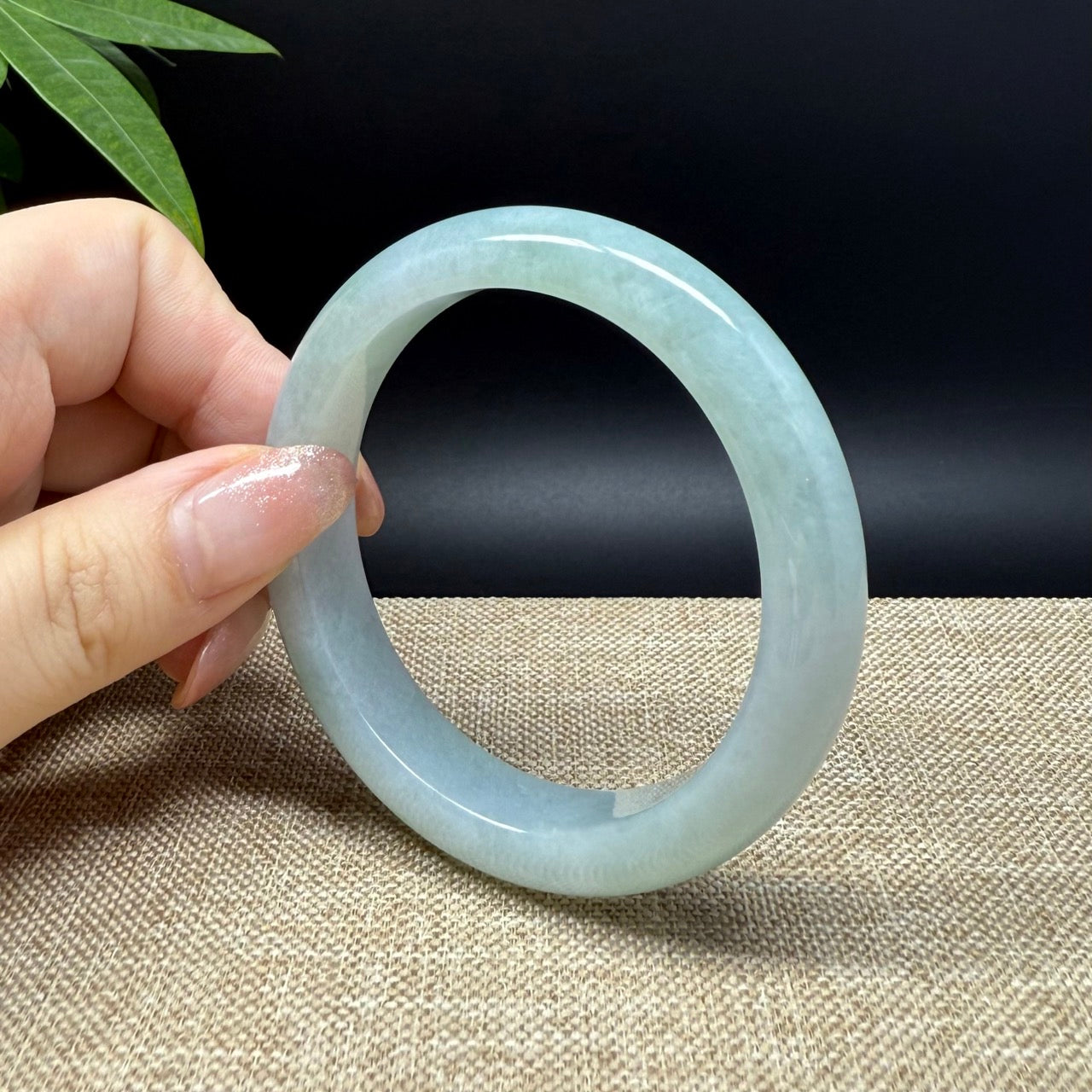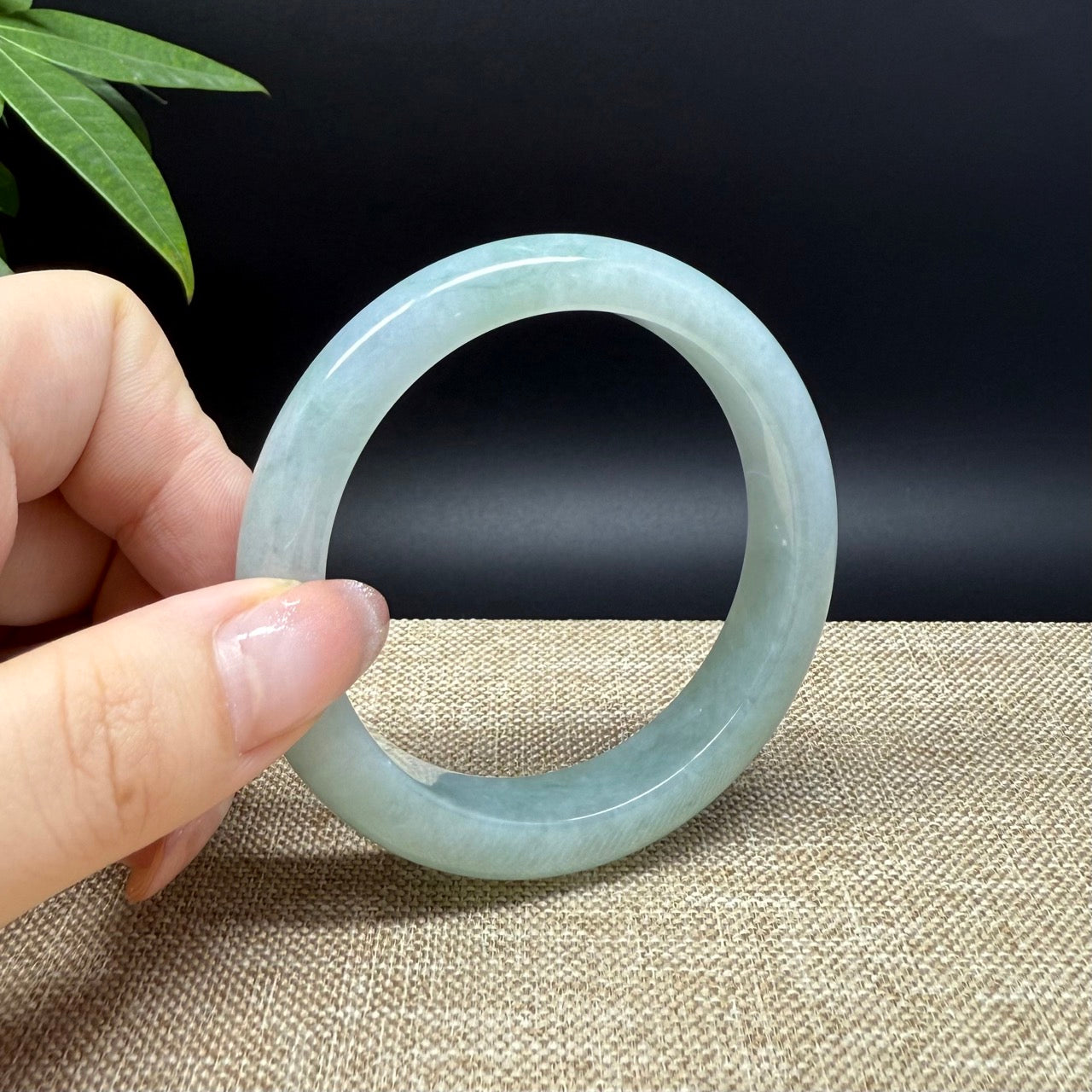 * DETAILS--- Genuine Burmese Jadeite Jade Bangle Bracelet. This bangle is made with very high-quality genuine Burmese Jadeite jade. The jade texture is fine and smooth with watery blue tone. The half round shape offers both comfort and a perfect display of the jade’s natural beauty. It's a unique gift for you and your love.