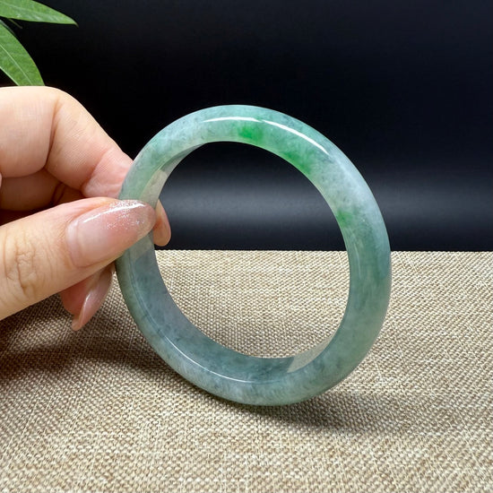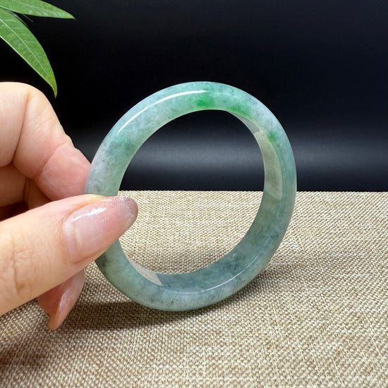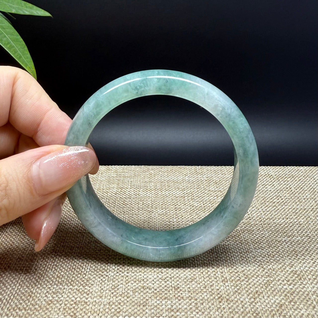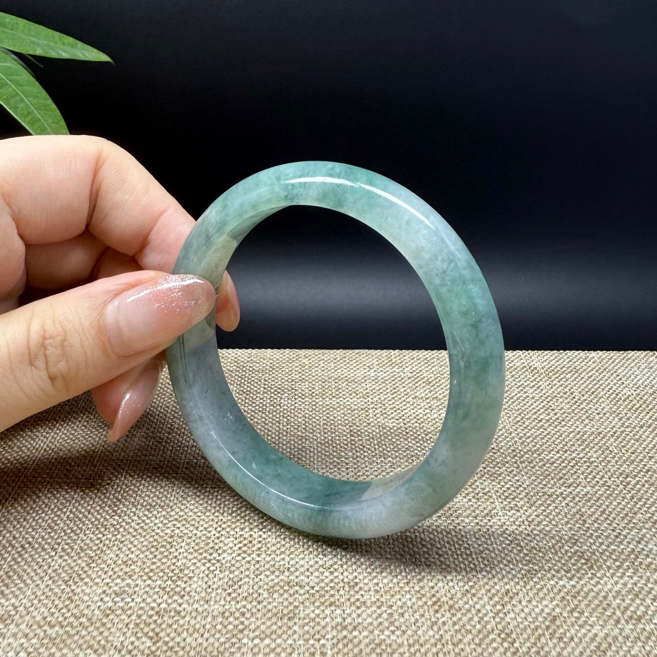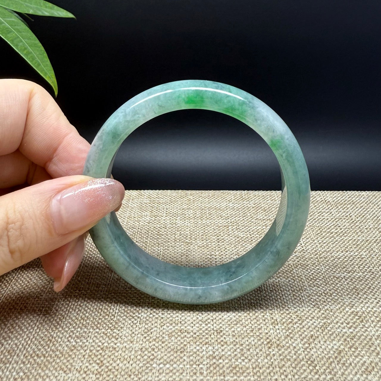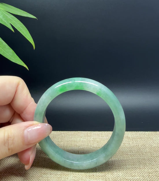 * DETAILS--- Genuine Burmese Jadeite Jade Bangle Bracelet. This bangle is made with very high-quality genuine Burmese Jadeite jade. The jade texture is fine and smooth with green blending a bit of white. The half round shape offers both comfort and a perfect display of the jade’s natural beauty. It's a unique gift for you and your love.