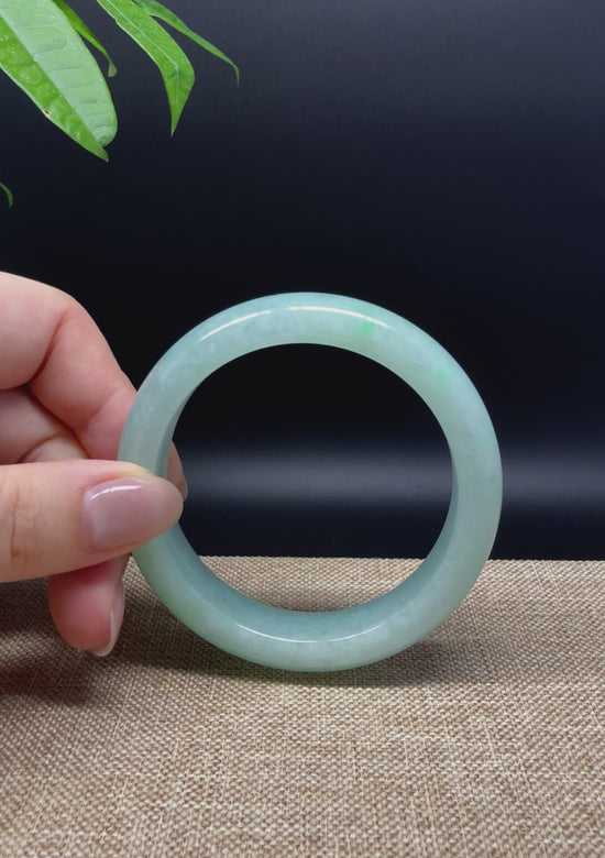 * DETAILS--- Genuine Burmese Jadeite Jade Bangle Bracelet. This bangle is made with very high-quality genuine Burmese Jadeite jade. The jade texture is fine and smooth with apple green color. The half round shape offers both comfort and a perfect display of the jade’s natural beauty. It's a unique gift for you and your love.