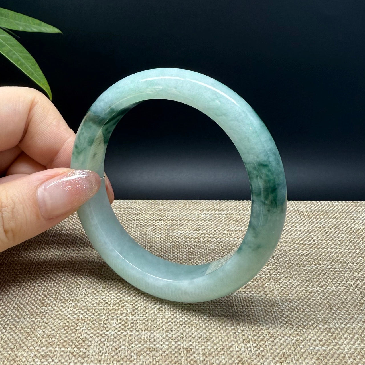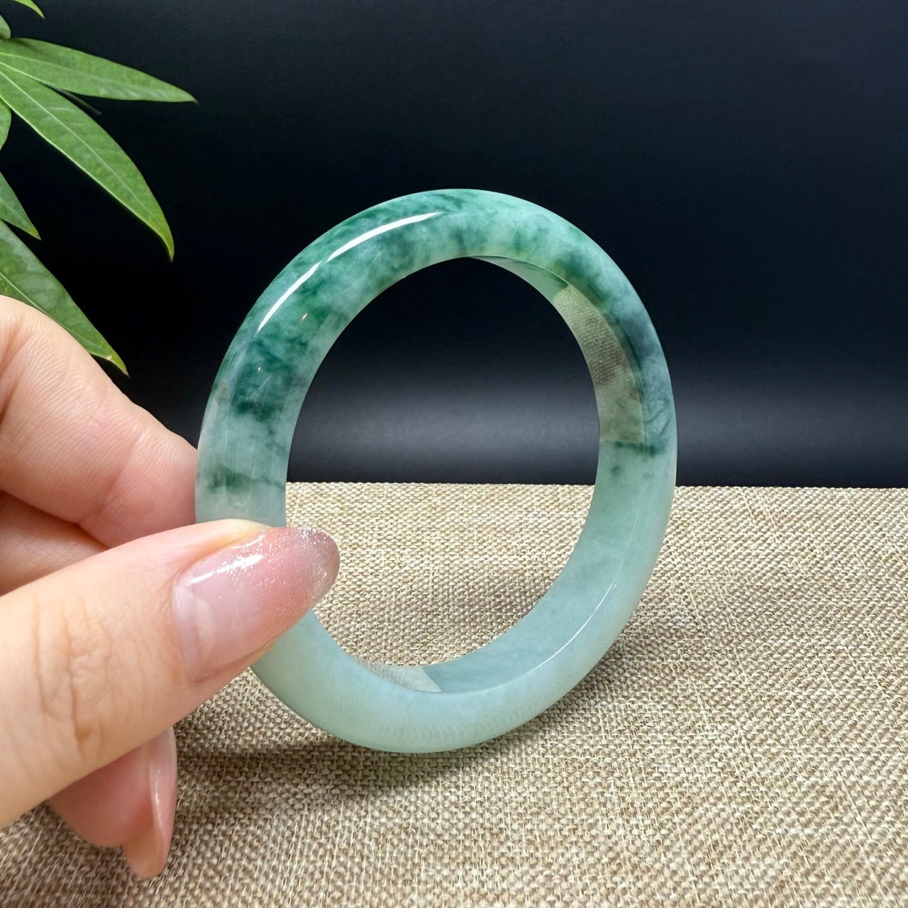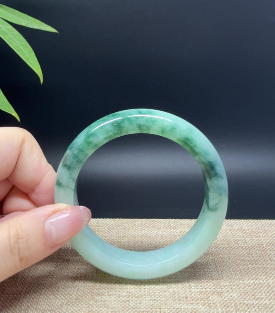 * DETAILS--- Genuine Burmese Jadeite Jade Bangle Bracelet. This bangle is made with very high-quality genuine Burmese Jadeite jade. The jade texture is fine and smooth with watermelon green base. The princess half round shape offers both comfort and suitable for people with petite hands. It's a unique gift for you and your love.