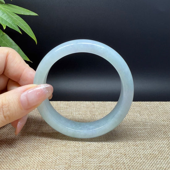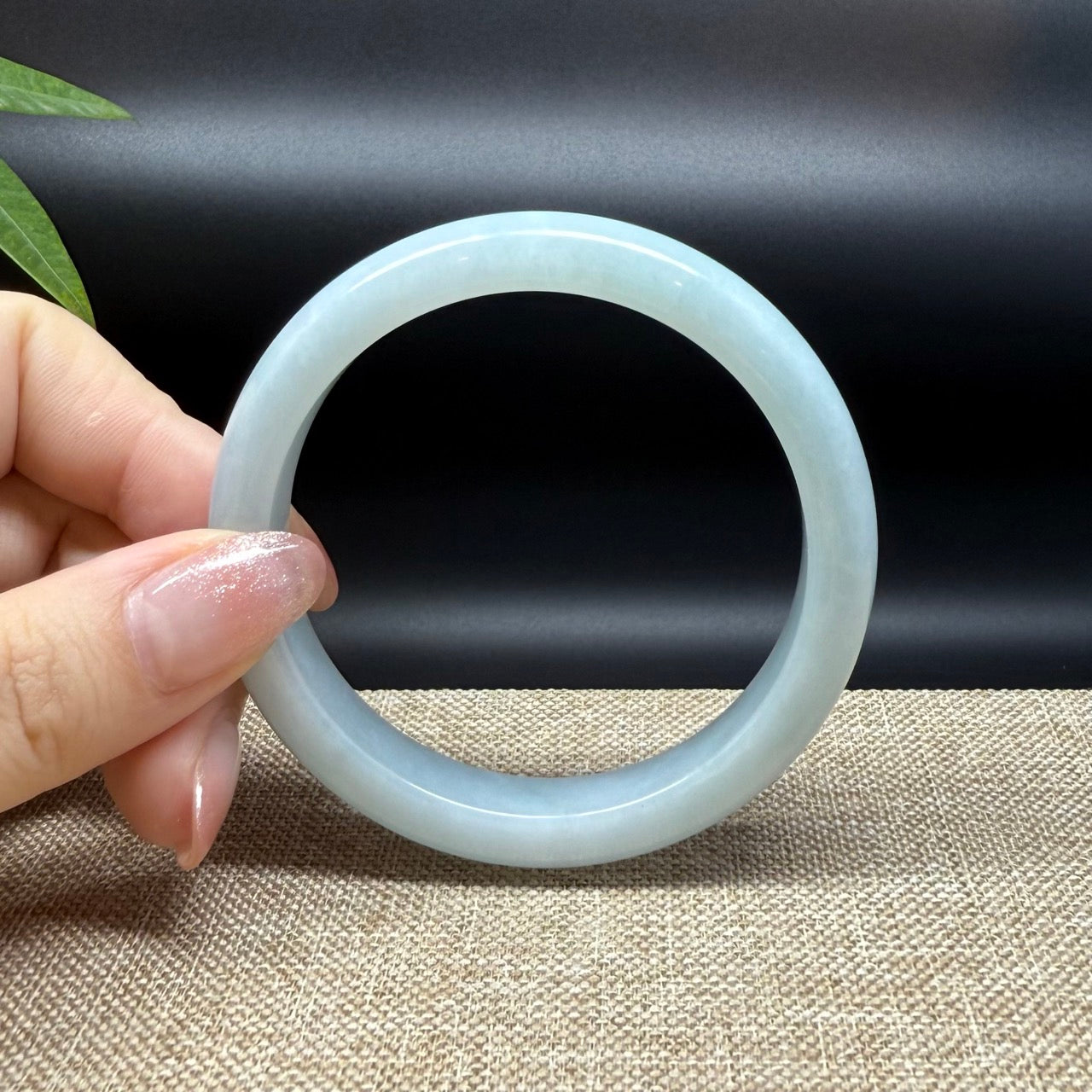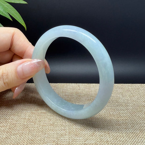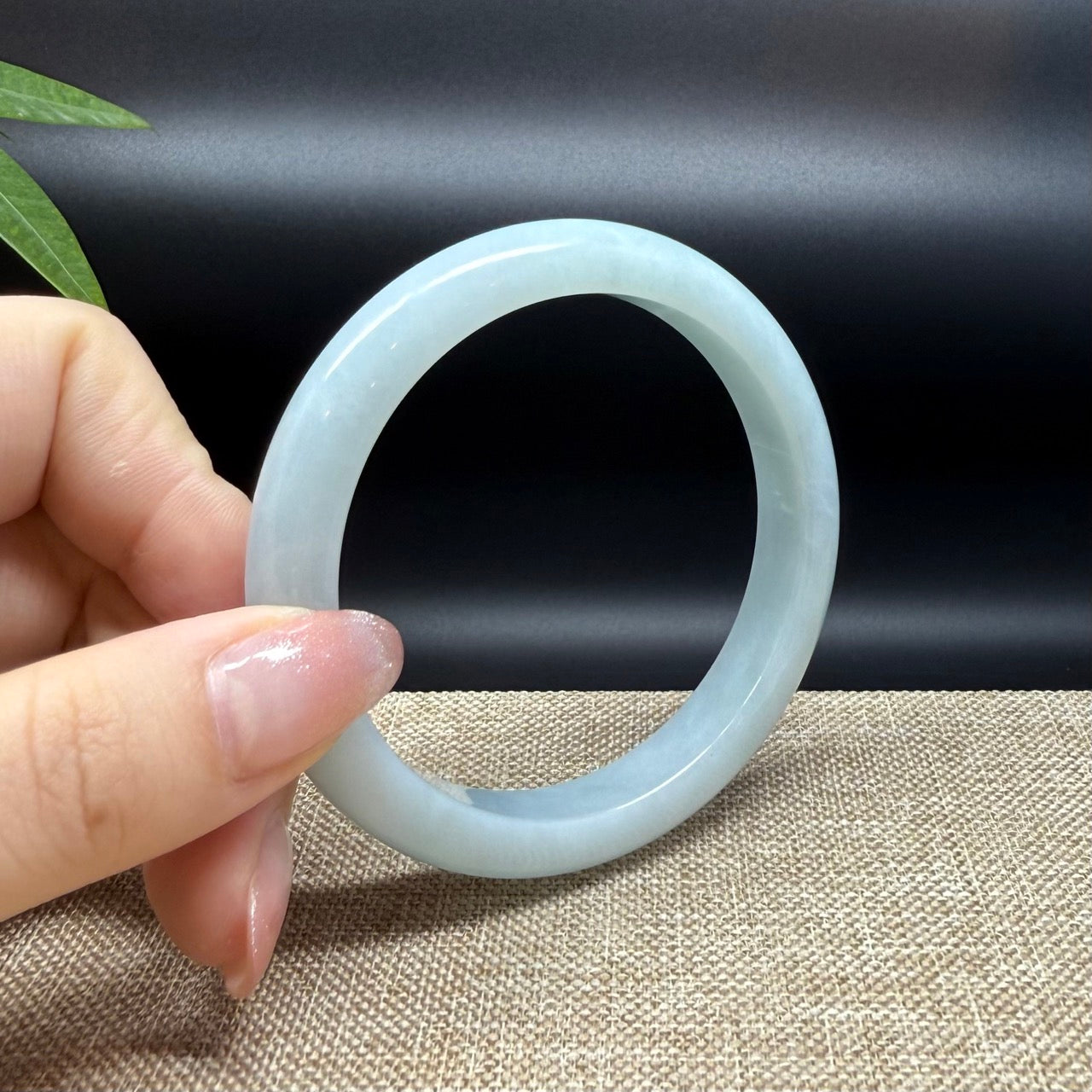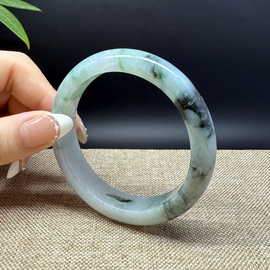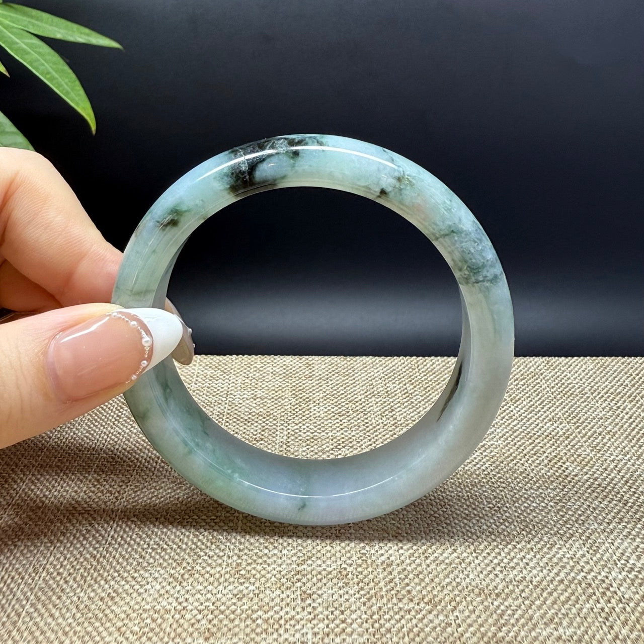 * DETAILS--- Genuine Burmese White Jadeite Jade Bangle Bracelet. This stunning bangle is made from fine Burmese jadeite, featuring milky white as the base with moss green flowers, just like mosses in snow. The half round shape offers both comfort and a perfect display of the jade’s natural beauty. A meaningful gift — perfect for yourself or someone truly special.