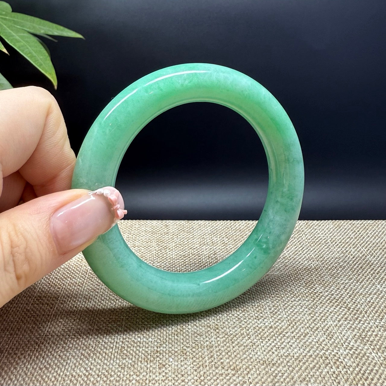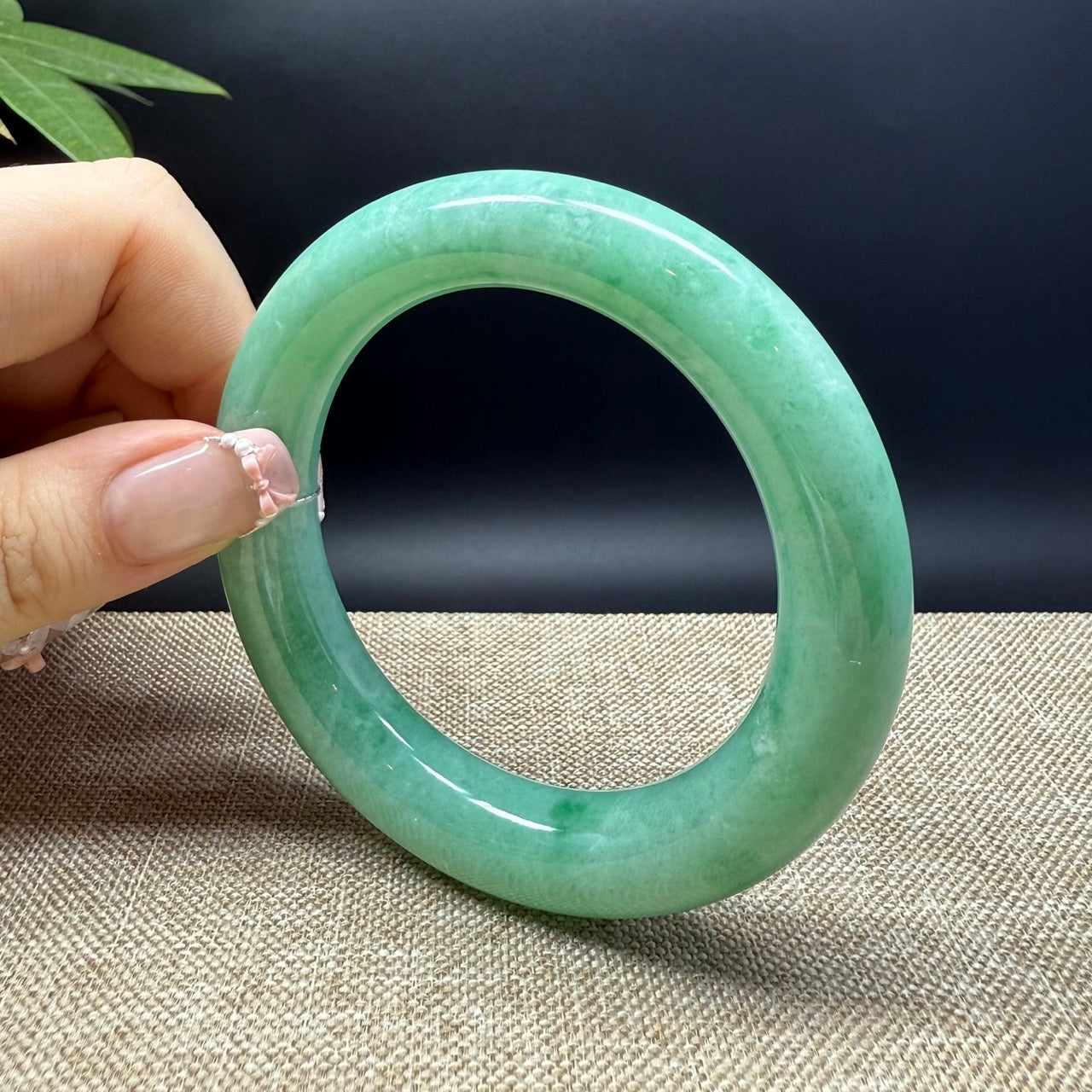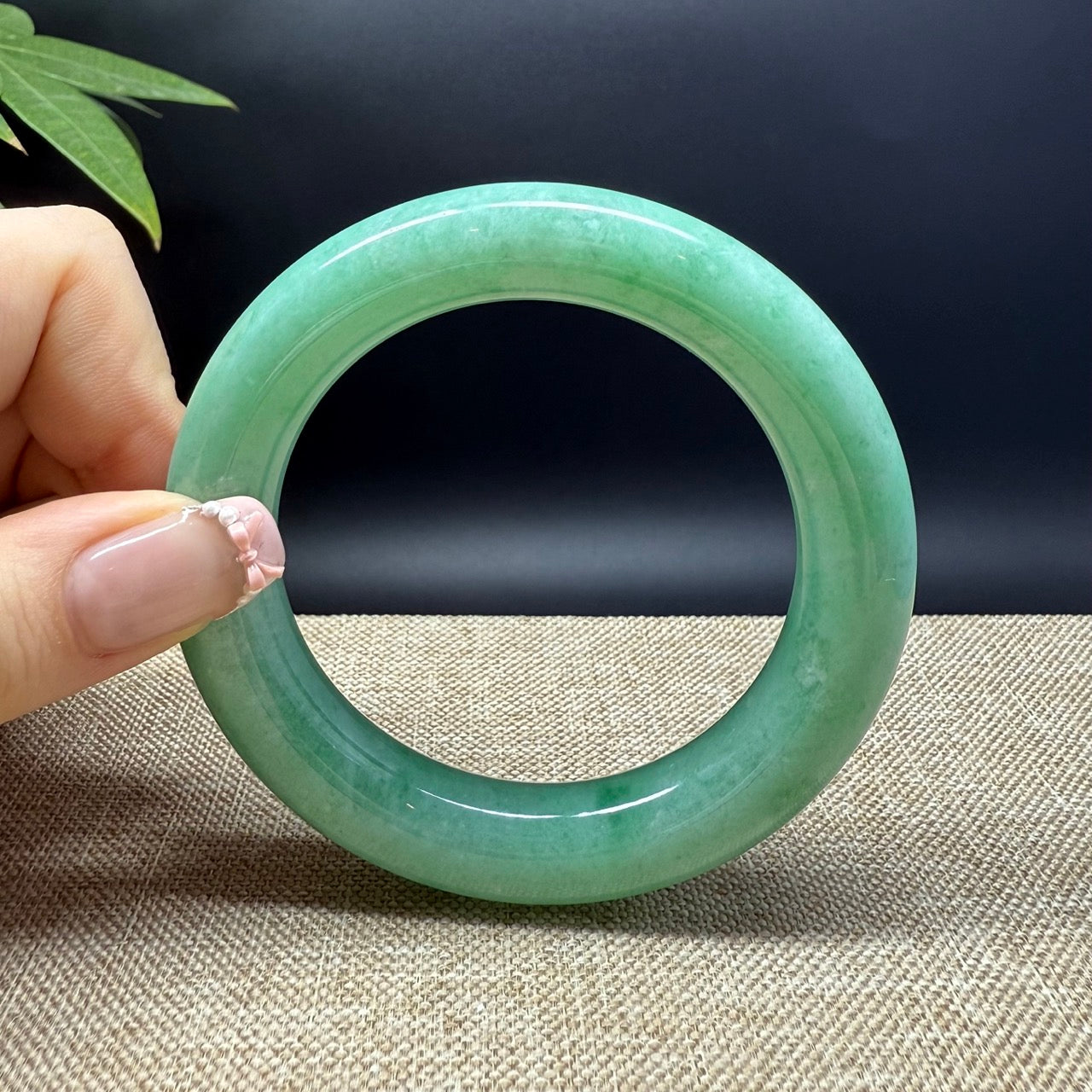 * DETAILS--- Genuine Burmese Jadeite Jade Bangle Bracelet. This jade displays a luminous, translucent texture with rich, vibrant apple green tones flowing throughout—captivating and full of style. The traditional round silhouette showcases nature's artistry in smooth, luxurious curves. More than just a piece of jewelry, this is a rare treasure—an elegant statement and a valuable investment in genuine Grade-A jadeite.