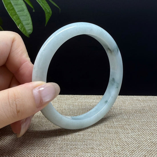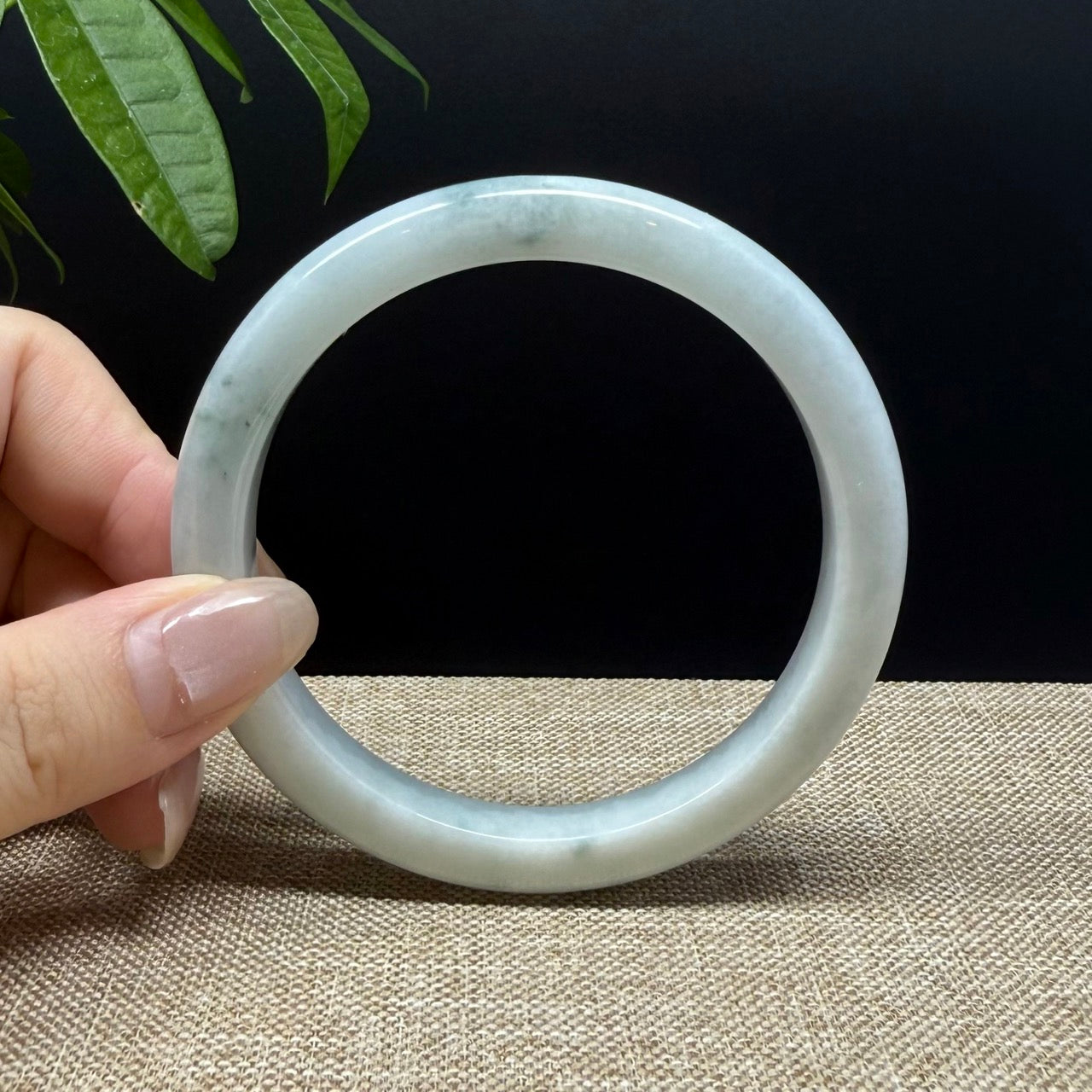 * DETAILS--- Genuine Burmese Jadeite Jade Bangle Bracelet. This bangle is made with very high-quality genuine Burmese Jadeite jade. The jade texture is fine and smooth with grey-apple green color and a little wuji(black color) tone. The half round shape offers both comfort and a perfect display of the jade’s natural beauty. It's a unique gift for you and your love.