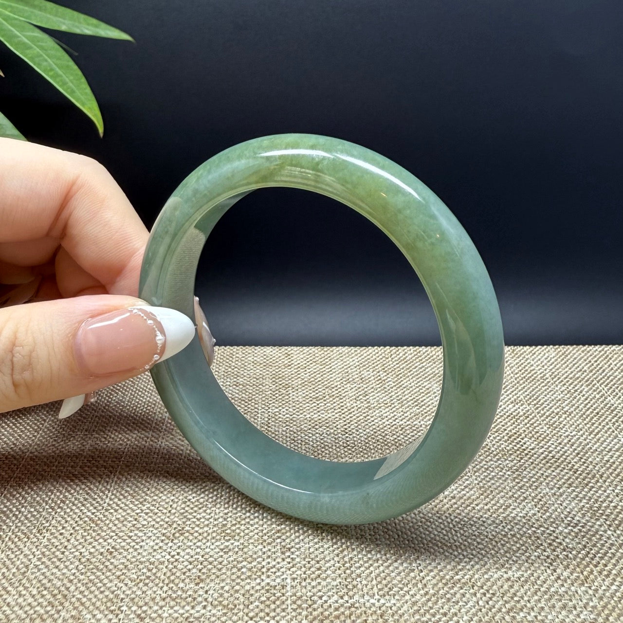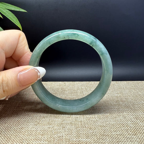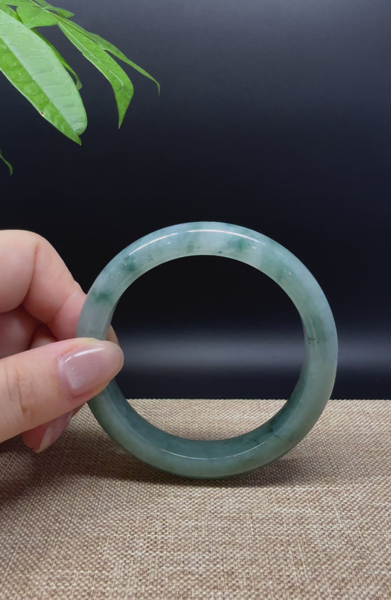 * DETAILS--- Genuine Burmese Jadeite Jade Bangle Bracelet. This bangle is made with very high-quality genuine Burmese Jadeite jade. The jade texture is fine and smooth with forest green(in a black and white filter) base. The half round shape offers both comfort and a perfect display of the jade’s natural beauty. More than jewelry, it carries centuries of Eastern wisdom - a wearable heirloom for the discerning collector.