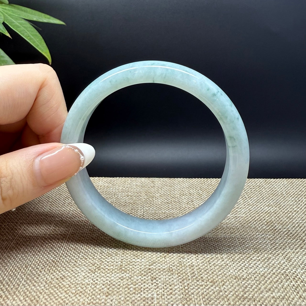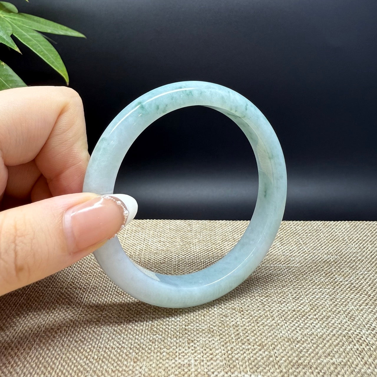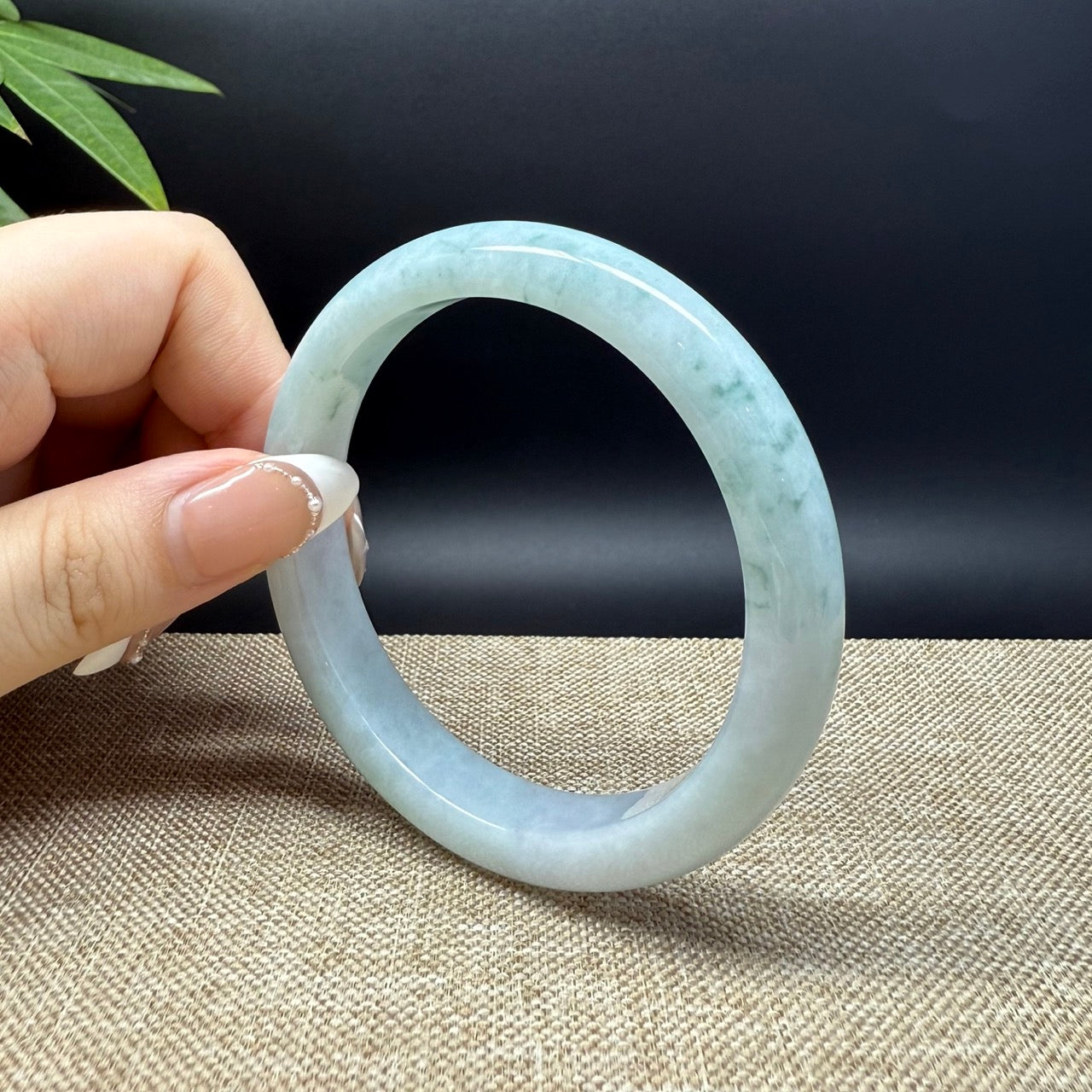 * DETAILS--- Genuine Burmese Jadeite Jade Bangle Bracelet. This bangle is made with very high-quality genuine Burmese Jadeite jade. The jade texture is fine and smooth with green-white color. The half round shape offers both comfort and a perfect display of the jade’s natural beauty. It's a unique gift for you and your love.