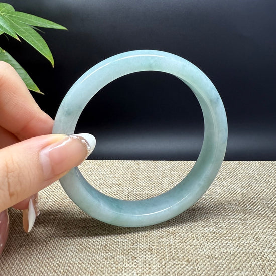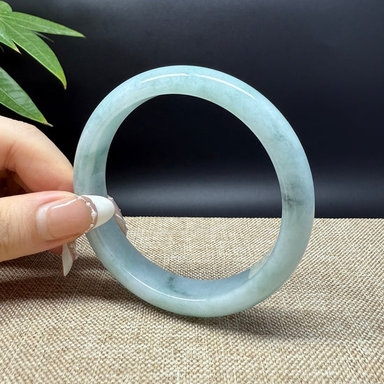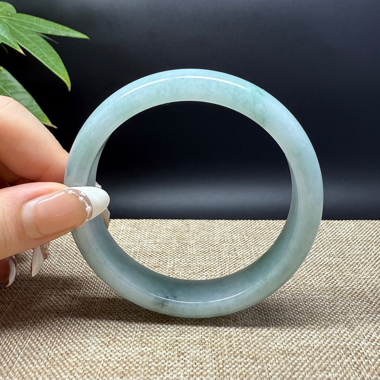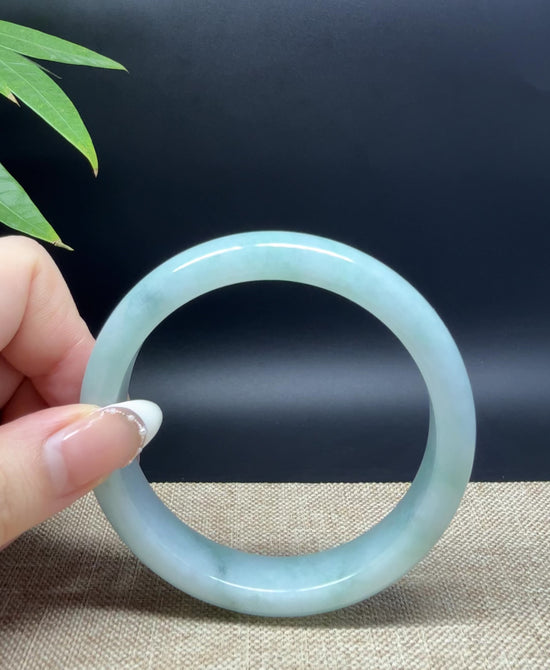 * DETAILS--- Genuine Burmese Jadeite Jade Bangle Bracelet. This bangle is made with very high-quality genuine Burmese Jadeite jade. The jade texture is translucent and smooth with blue green color. The half round shape offers both comfort and a perfect display of the jade’s natural beauty. It's a unique gift for you and your love.