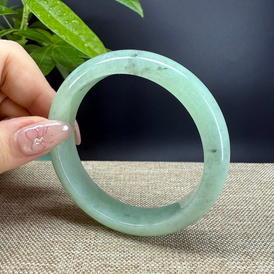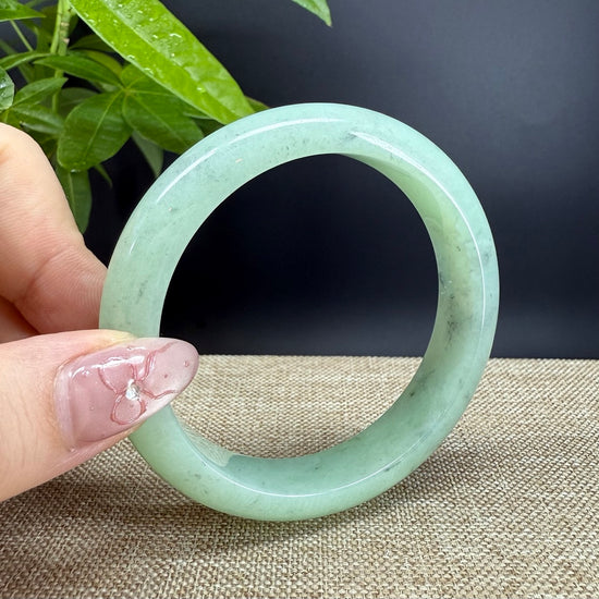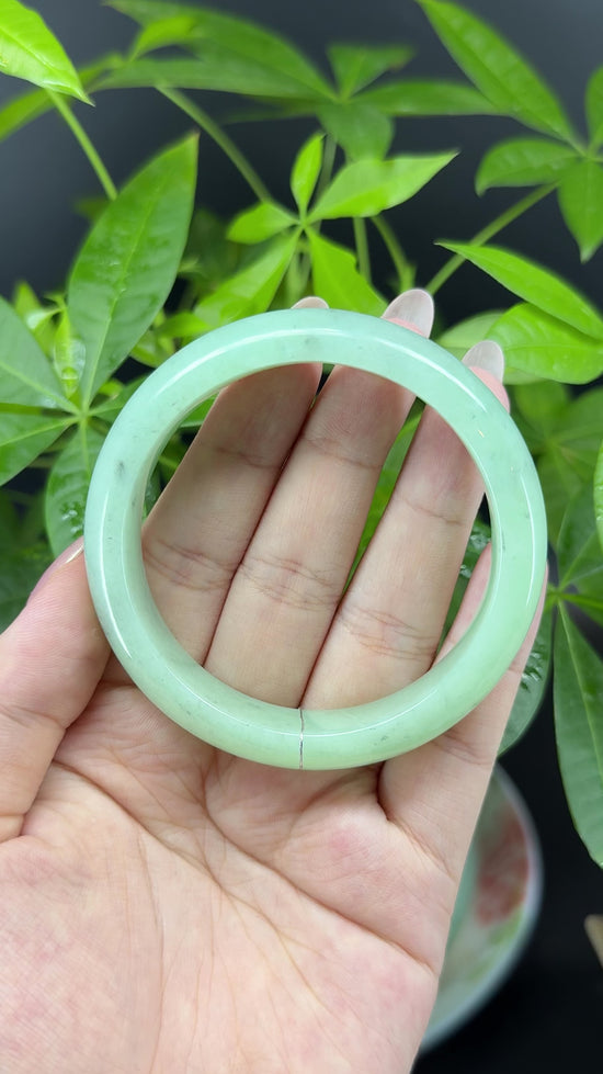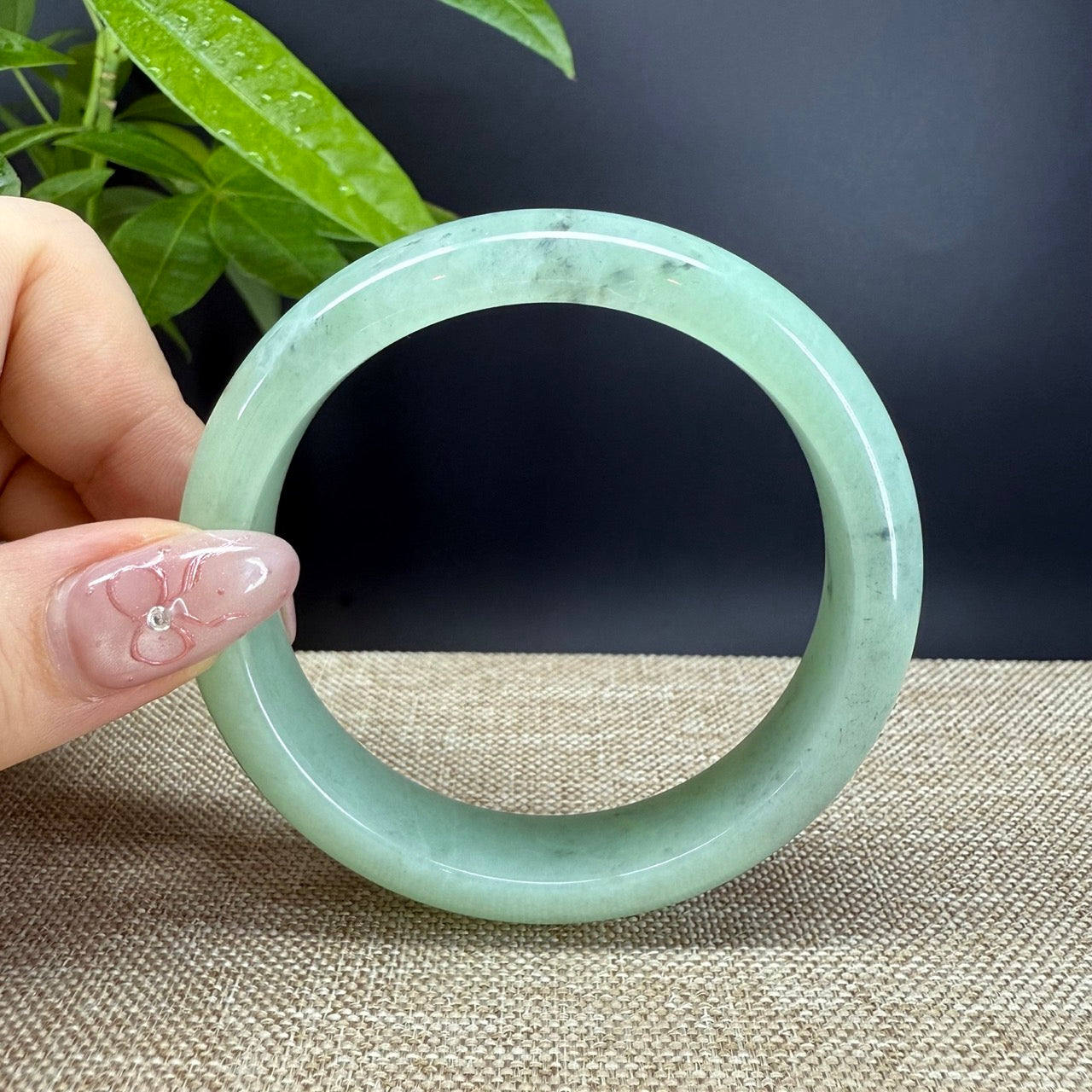DETAILS--- Genuine Burmese Jadeite Jade Bangle Bracelet. This bangle is made with very high-quality genuine Burmese Jadeite jade. The jade texture is fine and smooth with grape green base. The half round shape offers both comfort and a perfect display of the jade’s natural beauty. It's a unique gift for you and your love.