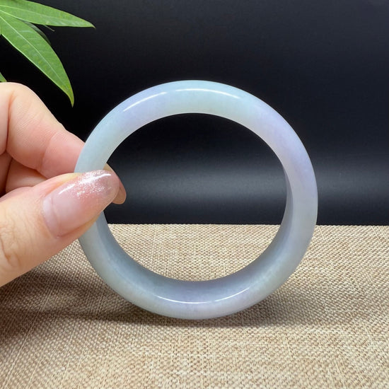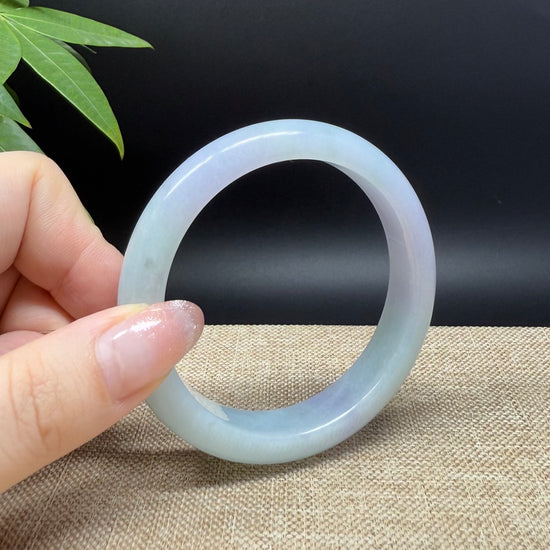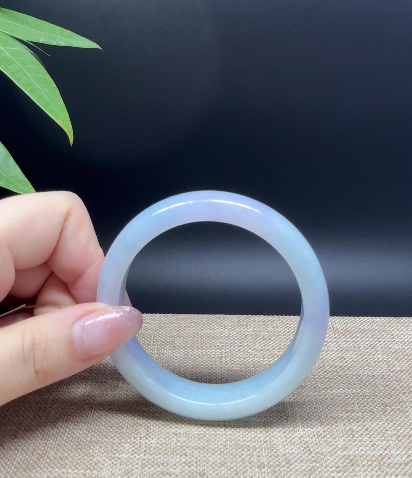 * DETAILS--- Genuine Burmese Jadeite Jade Bangle Bracelet. This exquisite Burmese jadeite bangle mesmerizes with its soft lavender blending light blue with smooth texture. The half round shape offers both comfort and a perfect display of the jade’s natural beauty—a wearable treasure radiating elegance and cultural significance for the discerning collector.