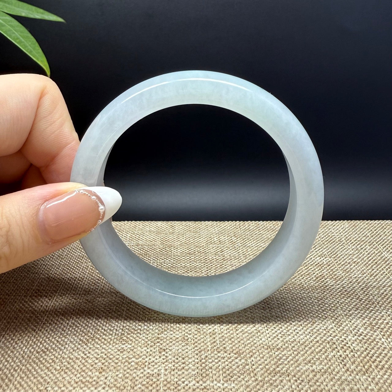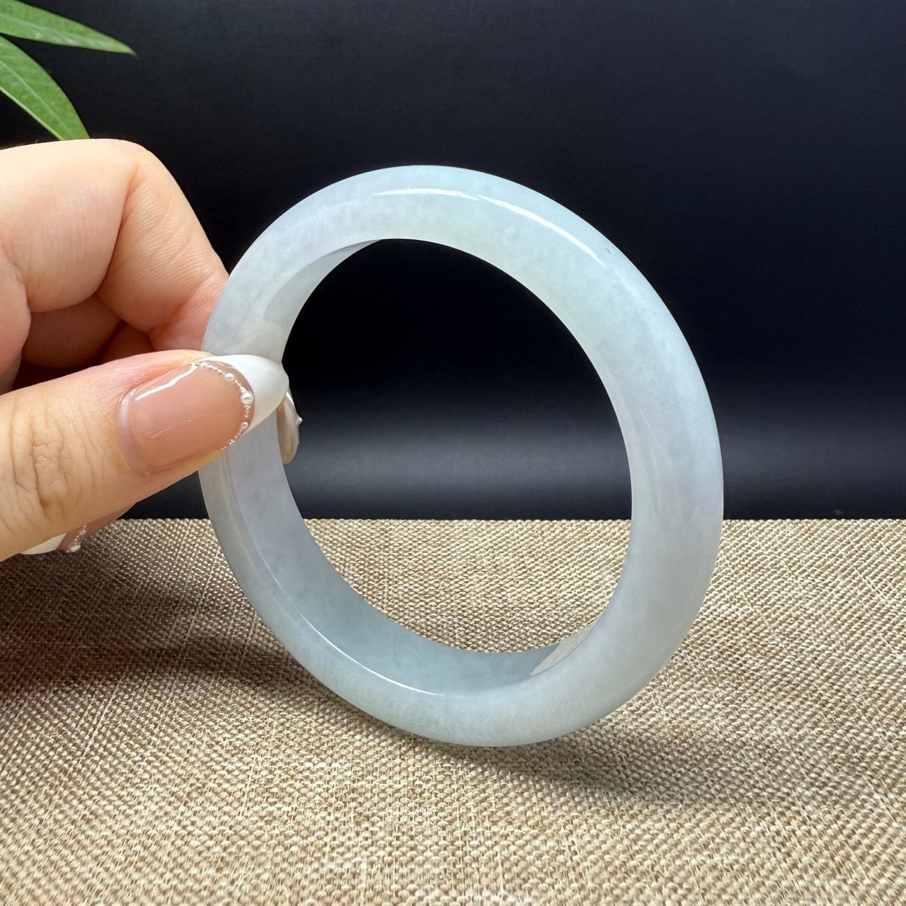 * DETAILS--- Genuine Burmese Jadeite Jade Bangle Bracelet. This exquisite Burmese jadeite bangle mesmerizes with its grey-lavender base color with a touch of luminous fresh green. The half round shape offers both comfort and a perfect display of the jade’s natural beauty—a wearable treasure radiating elegance and cultural significance for the discerning collector.