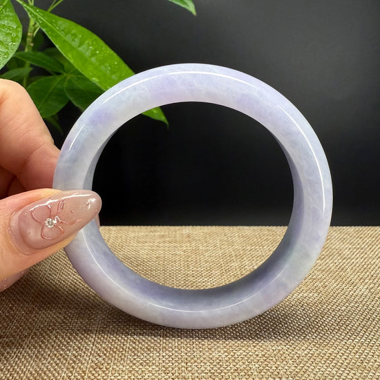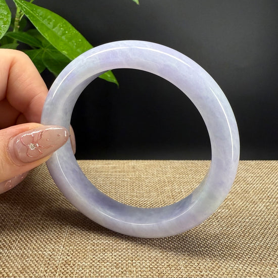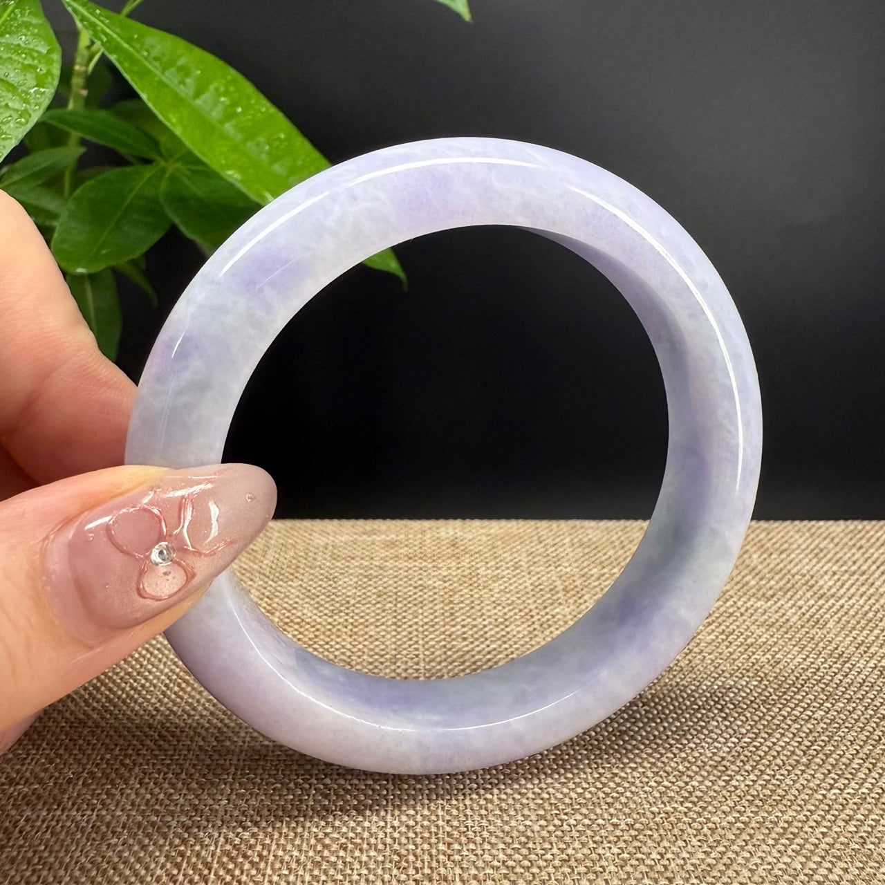 * DETAILS--- Genuine Burmese Jadeite Jade Bangle Bracelet. This bangle is made with very high quality genuine Burmese Lavender Jadeite jade in a half round silhouette. The jade texture is so smooth with lavender and milky white blending so well that it manifests an elegance and serene. It's a high-end gift for yourself or your love.