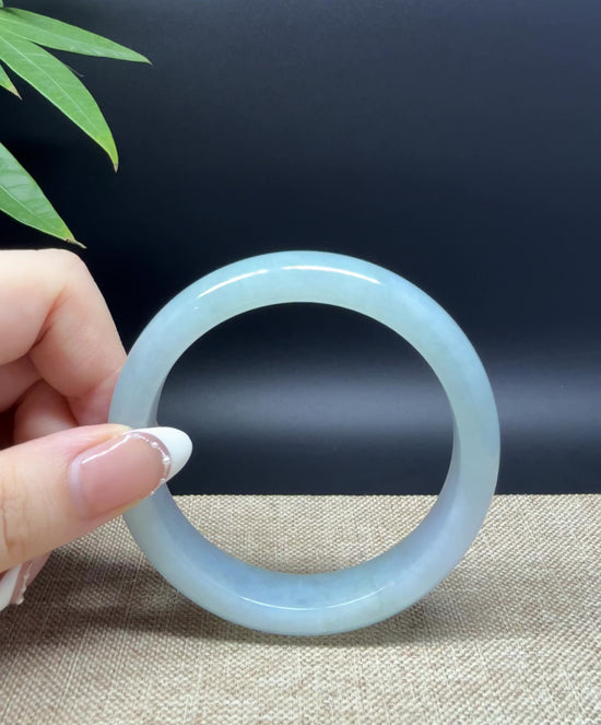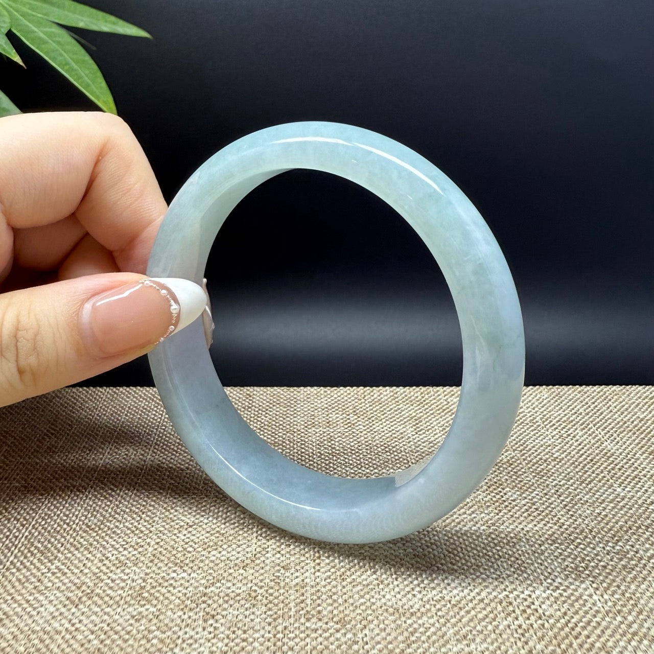 * DETAILS--- Genuine Burmese Jadeite Jade Bangle Bracelet. This bangle is made with very high-quality genuine Burmese Jadeite jade. The jade texture is smooth and translucent with ocean blue base. The half round shape offers both comfort and a perfect display of the jade’s natural beauty. It's a unique gift for you and your love.