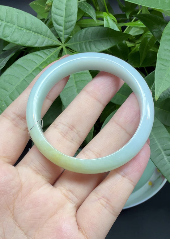 * DETAILS--- Genuine Burmese Jadeite Jade Bangle Bracelet. This exquisite bangle is crafted from premium Burmese jadeite in a white hue with a touch of passion fruit yellow. With its smooth, translucent texture and captivating color, it radiates a timeless elegance and cultural heritage. Known to symbolize protection and strength, jade bangles hold deep meaning, making this piece a thoughtful, one-of-a-kind gift for yourself or someone truly special.