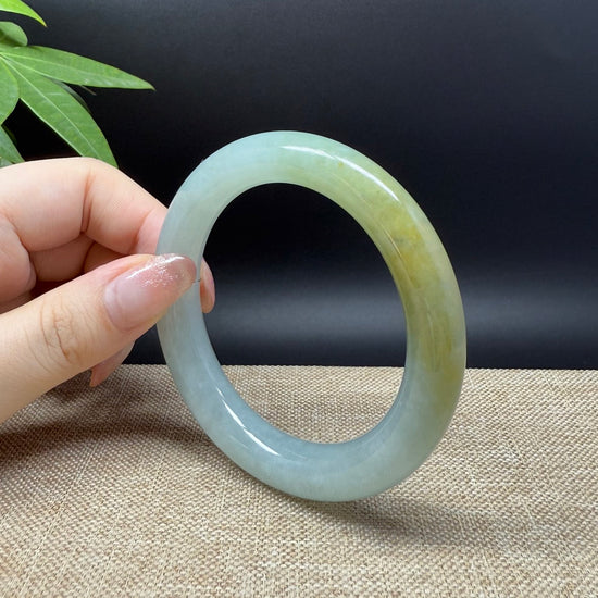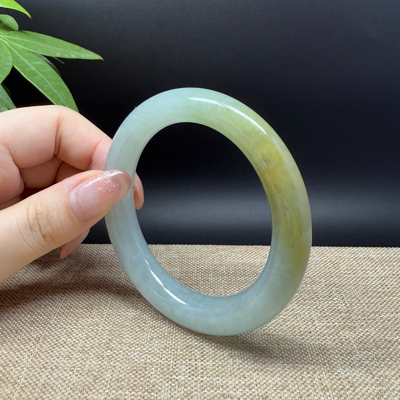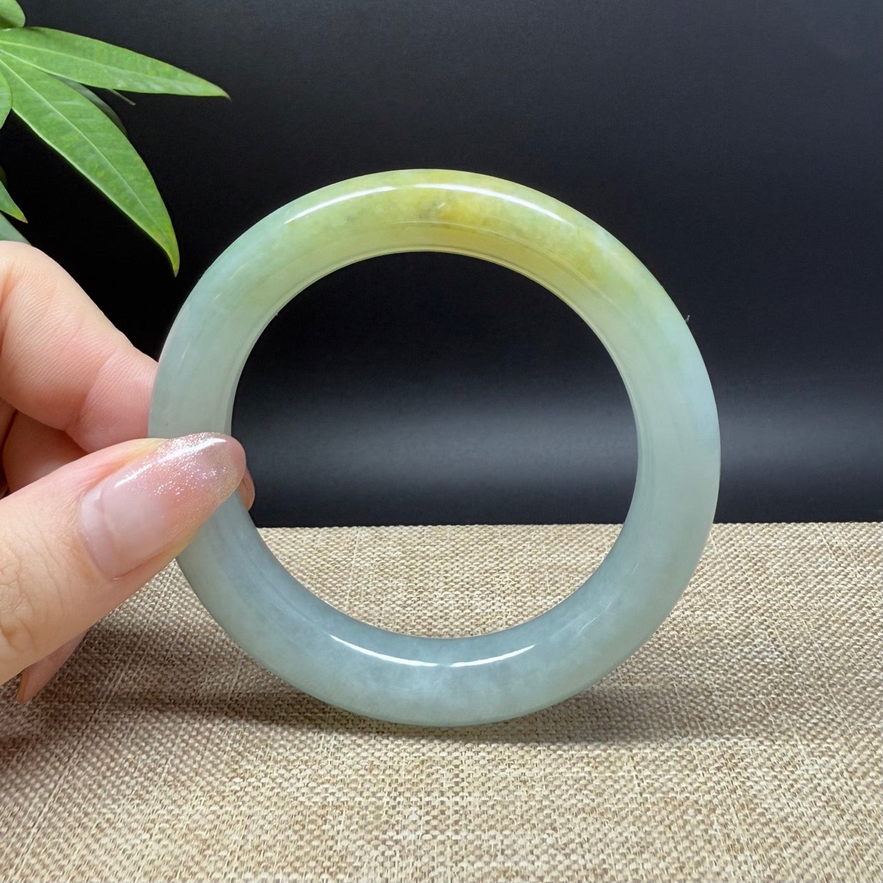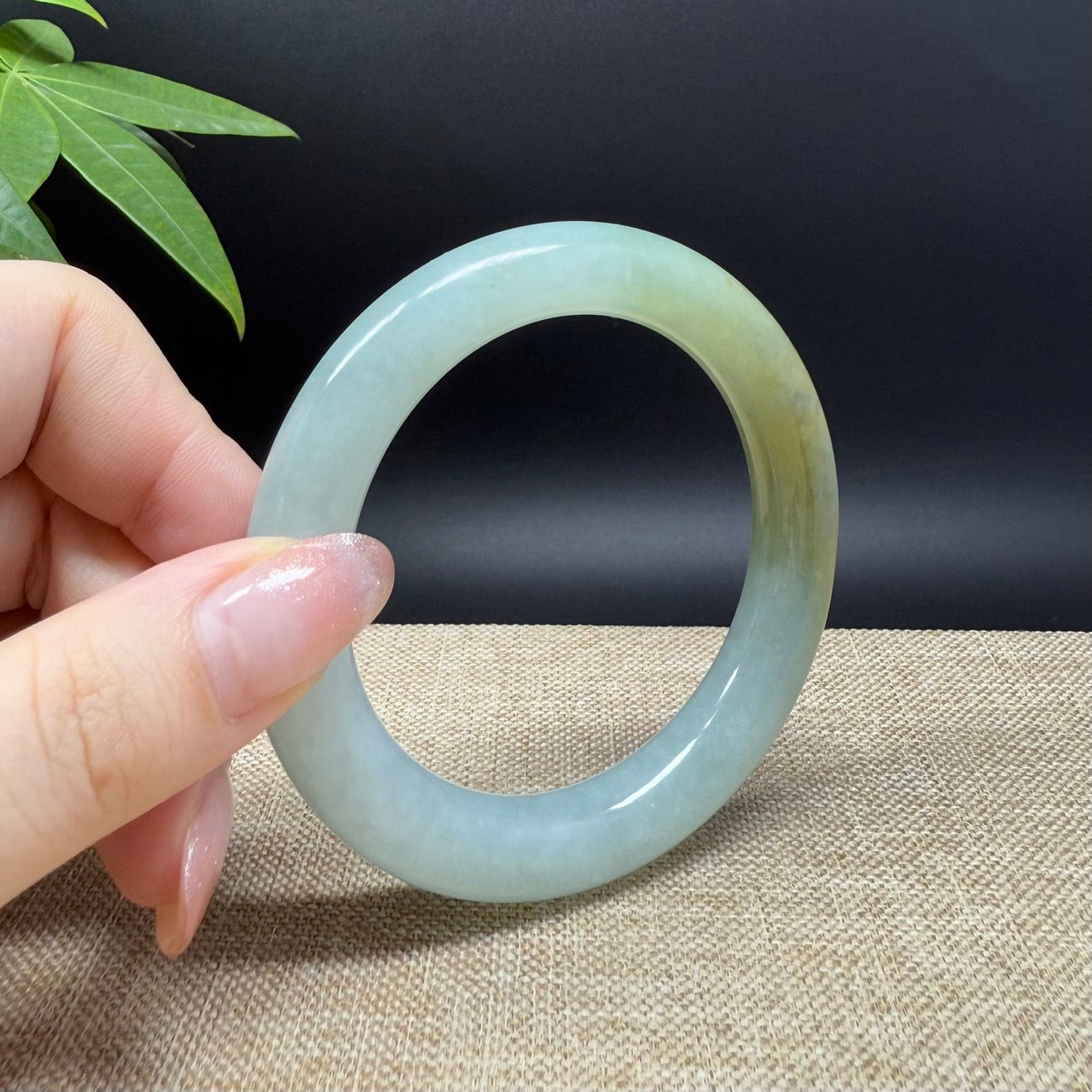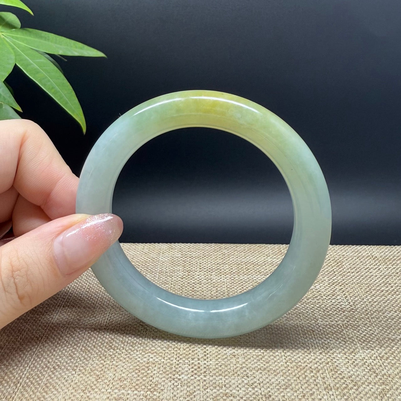 * DETAILS--- Genuine Burmese Jadeite Jade Bangle Bracelet. This exquisite bangle is crafted from premium Burmese jadeite in a watery blue hue with a touch of yellow. The traditional round silhouette showcases nature's artistry in smooth, luxurious curves, making this piece a thoughtful, one-of-a-kind gift for yourself or someone truly special.